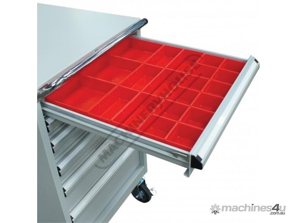 - Drawer 3 & 4 - 100mm high with moveable steel dividers 3x3 layout