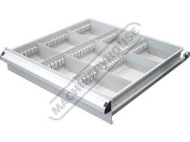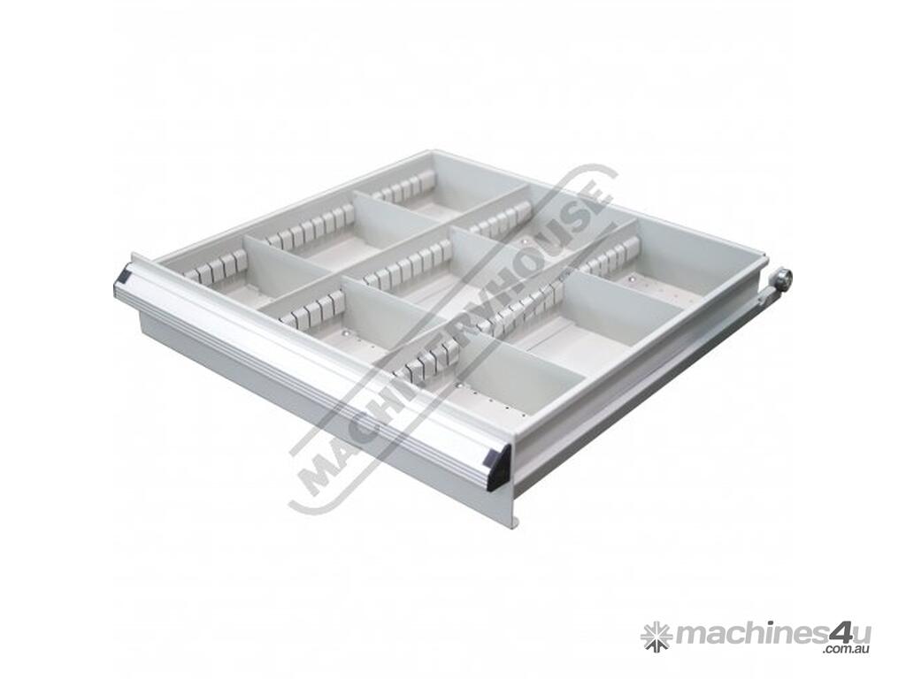 5 Drawers top drawers include a series of different size plastic boxes for those small items all other drawers come with adjustable steel dividers