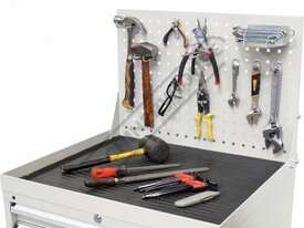 Includes steel frame backing panel with rubber protective base cover is great to rest tooling and precious parts on top of the cabinet