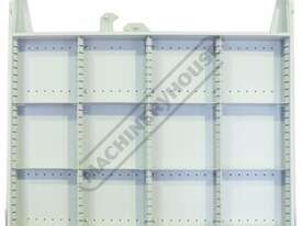 - Drawer 3 & 4 - 100mm high with moveable steel dividers 4x3 layout