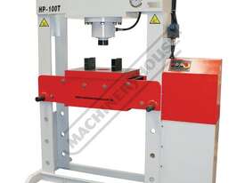 METALMASTER Industrial Motorised Hydraulic Press - 100 Tonne HP-100T Welded Steel Frame Construction Includes Heavy Steel Worktable & Bending Blocks