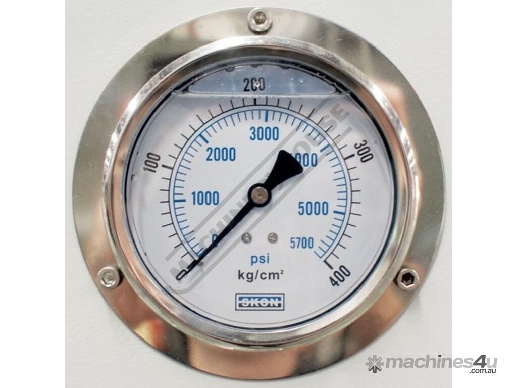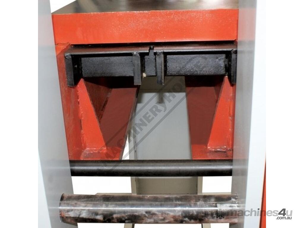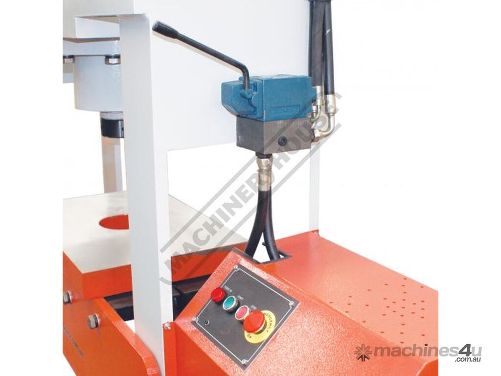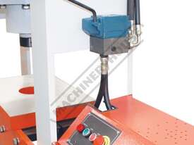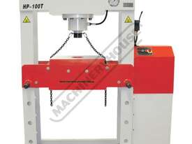 The Metalmaster HP-100T, 100 Tonne electric/hydraulic press is ideal for pressing, bending, forming, straightening and a whole variety of operations. The hydraulic system is equipped with a pressure guage and a joystick lever to control the operation. A heavy one piece steel workplate and a pair of pressing blocks are supplied as standard equipment.