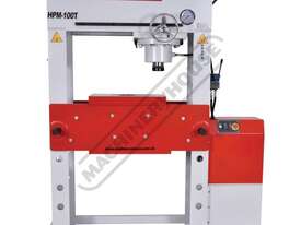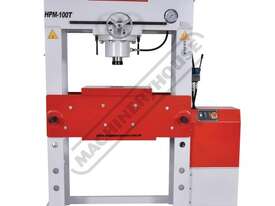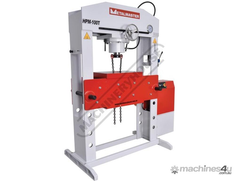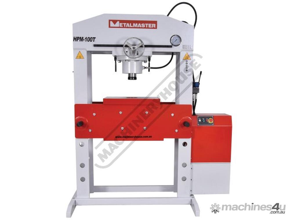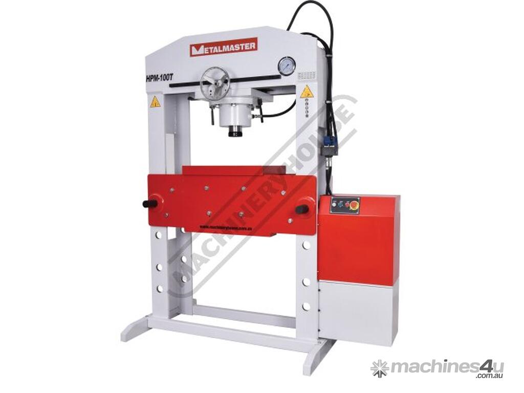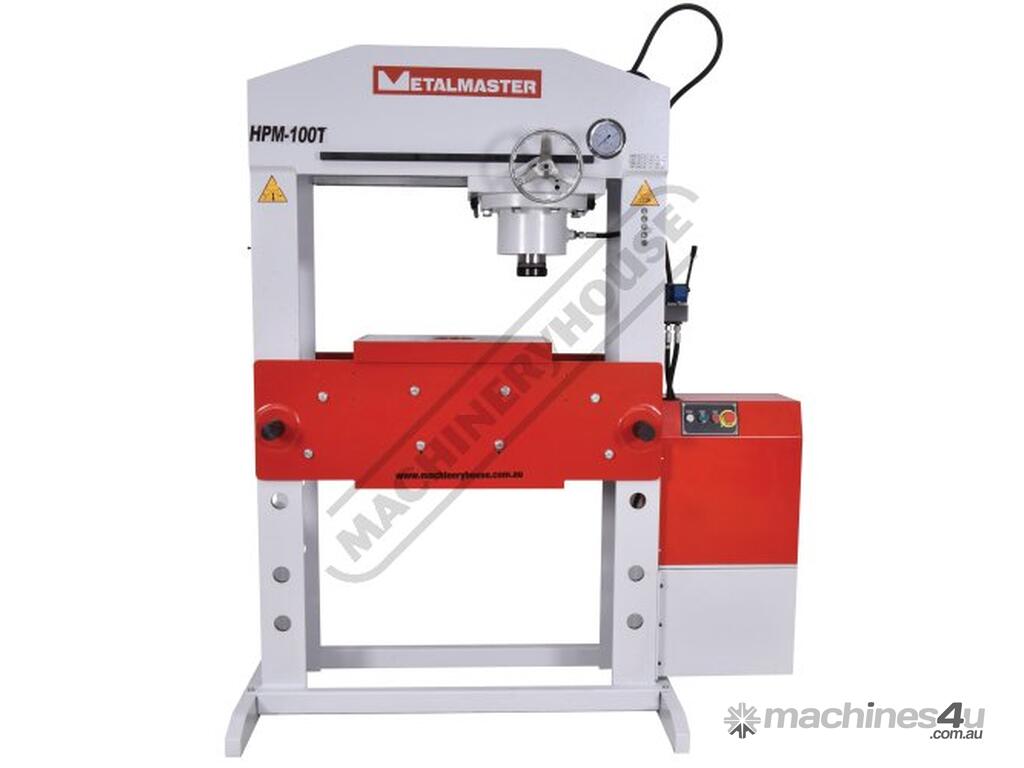 METALMASTER Industrial Motorised Hydraulic Press with Movable Cylinder - 100 Tonne HPM-100T Welded Steel Frame Construction Includes Heavy Steel Worktable & Bending Blocks