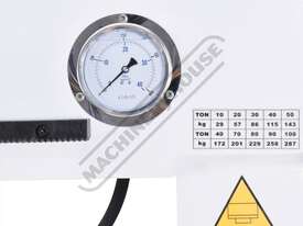 The Metalmaster HPM-100T, 100 Tonne electric/hydraulic press features a sliding cylinder which can be moved from side to side allowing for those offset pressing jobs. A heavy one piece steel workplate and a pair of pressing blocks are supplied as standard making this the ideal press for pressing, bending, forming, straightening and a whole variety of operations.