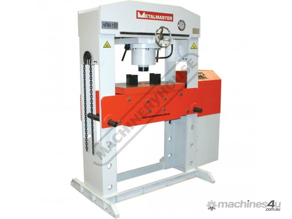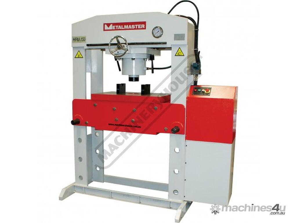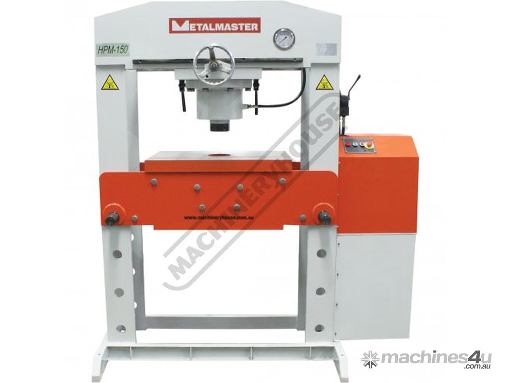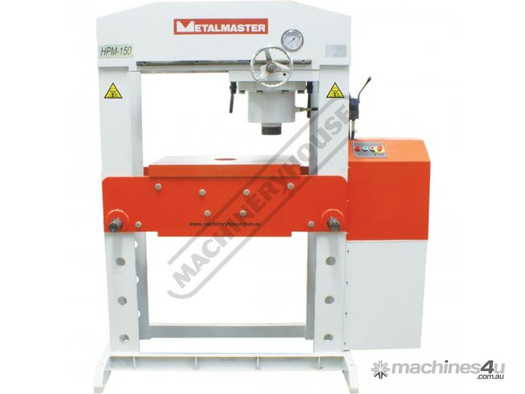 METALMASTER Industrial Motorised Hydraulic Press with Movable Cylinder - 150 Tonne HPM-150T Welded Steel Frame Construction Includes Heavy Steel Worktable & Bending Blocks