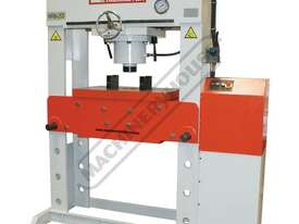 The Metalmaster HPM-200T, 200 Tonne electric/hydraulic press features a sliding cylinder which can be moved from side to side allowing for those offset pressing jobs. A heavy one piece steel workplate and a pair of pressing blocks are supplied as standard making this the ideal press for pressing, bending, forming, straightening and a whole variety of operations.