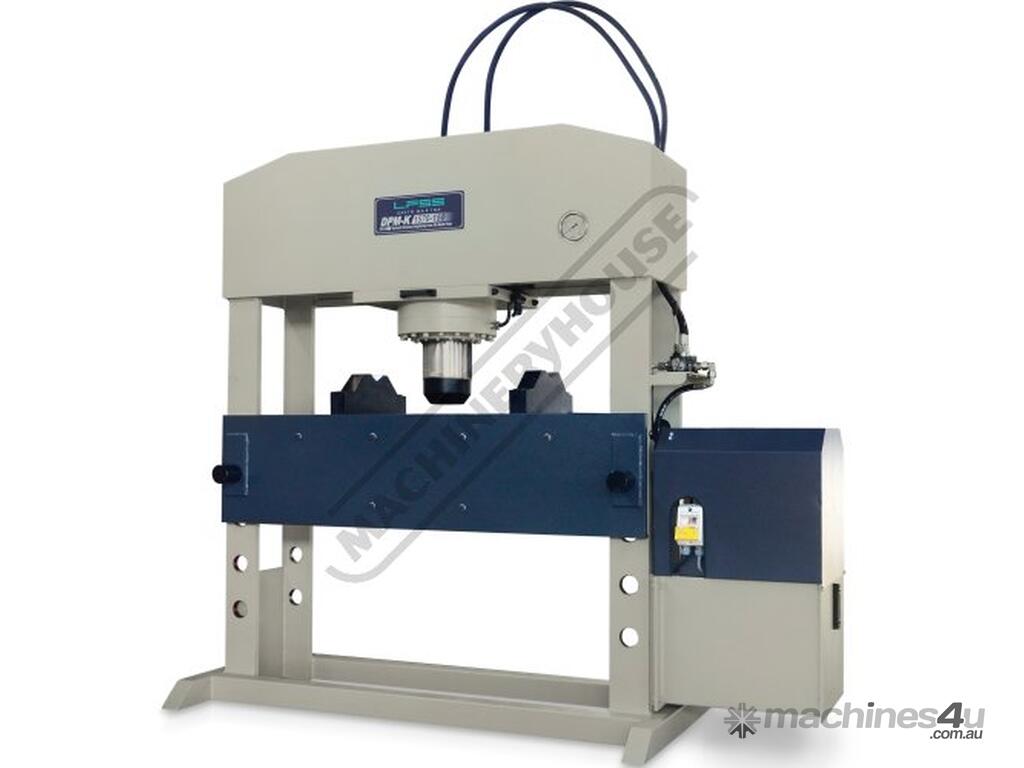 The LFSS DPM-K1570 150 Tonne electric hydraulic press features a sliding cylinder which can be moved from side to side allowing for those offset pressing jobs.