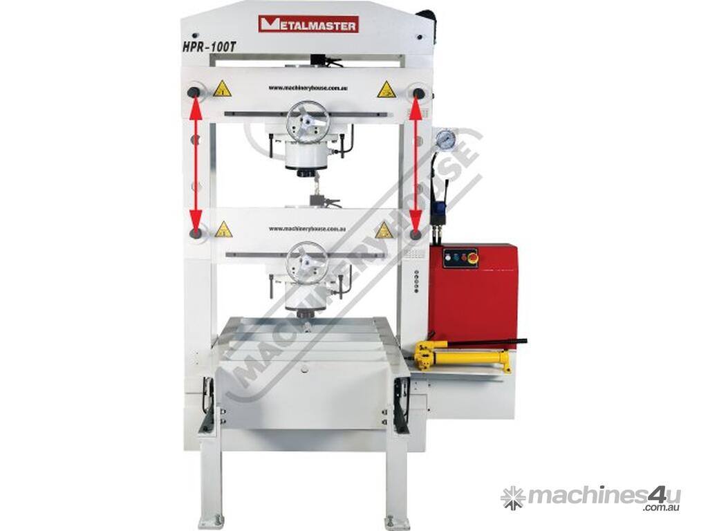 METALMASTER Industrial Motorised Hydraulic Roll Frame Press with Movable Cylinder - 100 Tonne HPR-100T Heavy Duty 1680 x 1040mm Stationary Bed Includes Sliding Roll Frame & Movable Cylinder