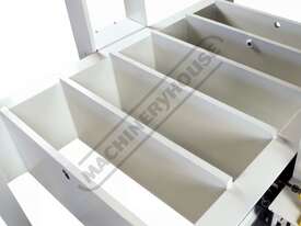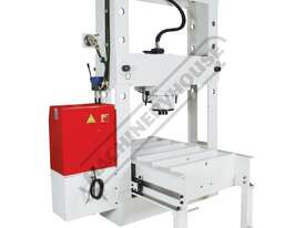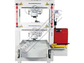 Press frame can be repositioned by easily sliding back & forth along table bed and travel a total of 1020mm