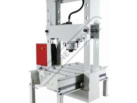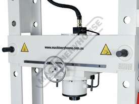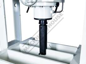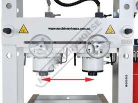 The HP-100T unique roll frame press with moveable head is designed to support heavy loads with its stationary bed. The press frame can slide back & forth & be positioned along the 1680mm table bed, whilst the ram can also slide left to right into the desired position required for those awkward offset jobs, making this press very handy to have in any heavy vehicle repair workshop or manufacturer.