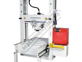 The HP-100T unique roll frame press with moveable head is designed to support heavy loads with its stationary bed. The press frame can slide back & forth & be positioned along the 1680mm table bed, whilst the ram can also slide left to right into the desired position required for those awkward offset jobs, making this press very handy to have in any heavy vehicle repair workshop or manufacturer.