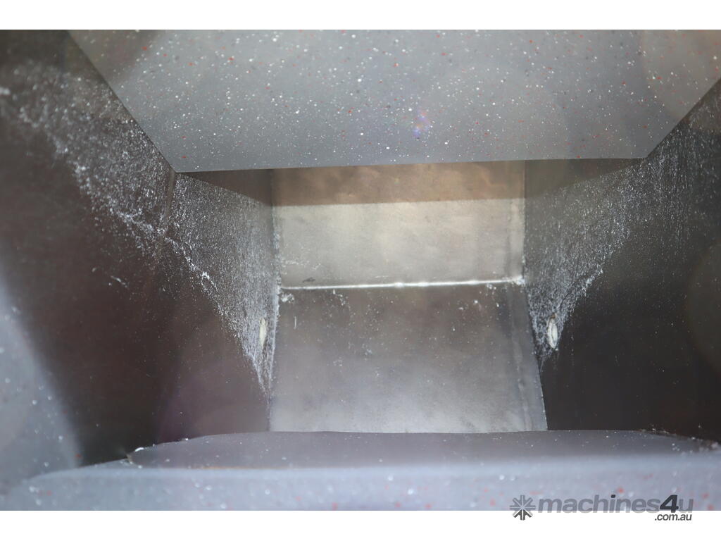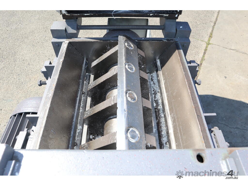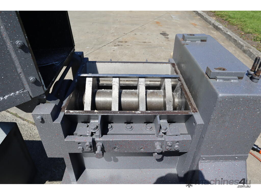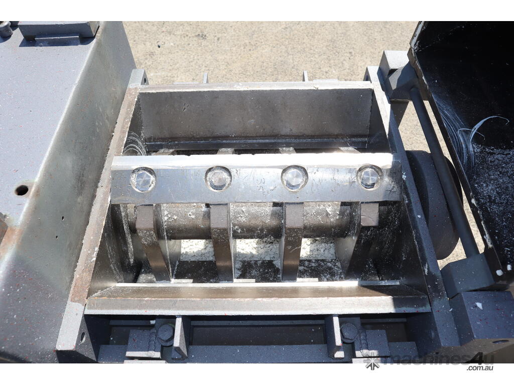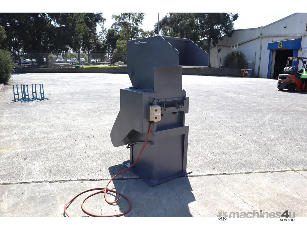 "This industrial granulator may be used in material processing applications, particularly in industries such as recycling, waste management, and manufacturing. It may be employed for reducing the size of various materials like plastics, wood, and soft metals. Businesses looking to improve recycling efficiency and manage bulk material reduction may benefit from the granulator. The granulator functions by feeding materials through its hopper into rotating blades that break them into smaller, manageable sizes."