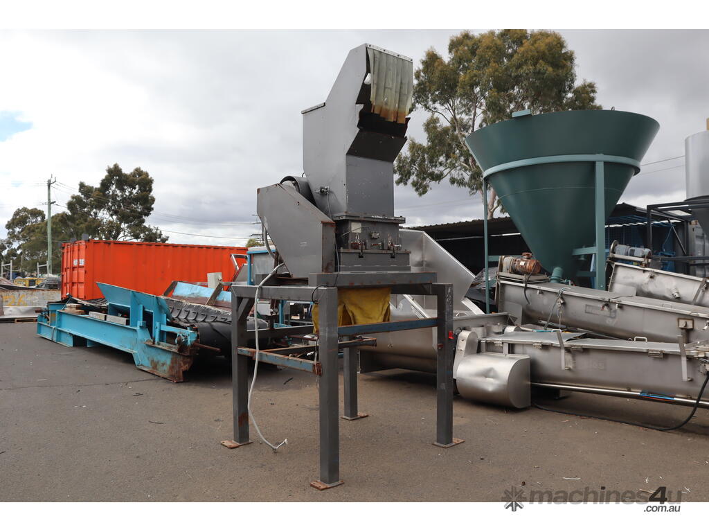 Used industrial granulator equipped with a 18.5 kW motor. Designed for size reduction within recycling and material recovery systems, providing efficient granulation of pre-processed materials prior to downstream separation or refining stages.