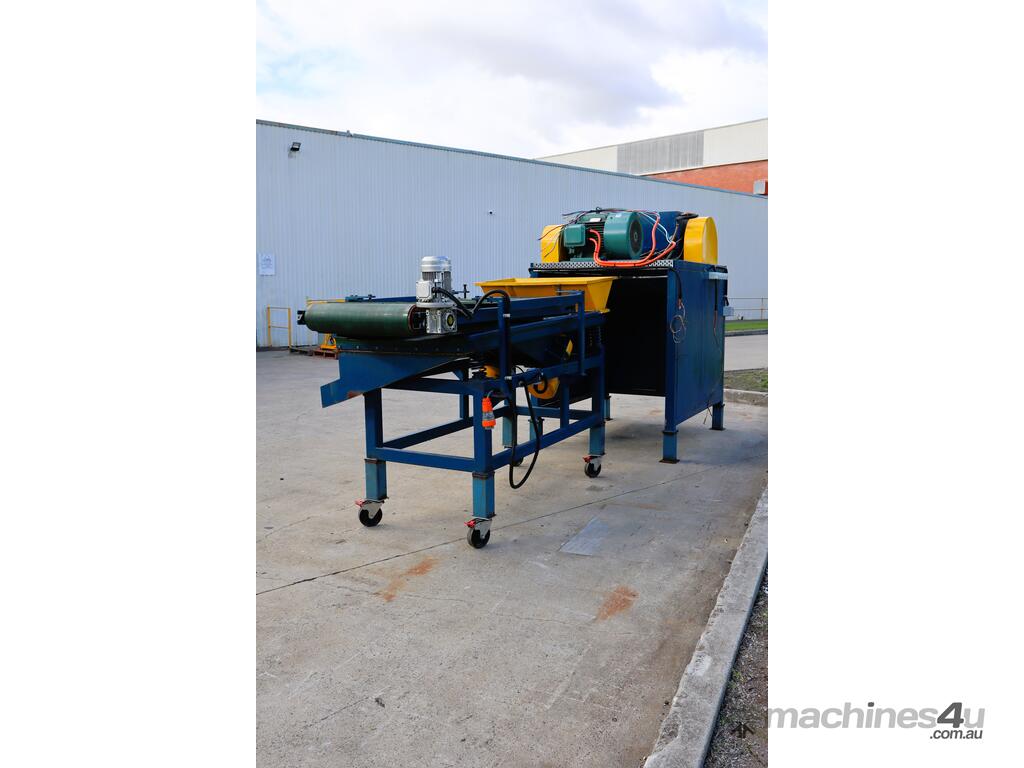 Includes a vibratory conveyor which comes equipped with a magnetic belt that picks up metals, while the leftover debris will roll down an outlet channel that runs out the side.