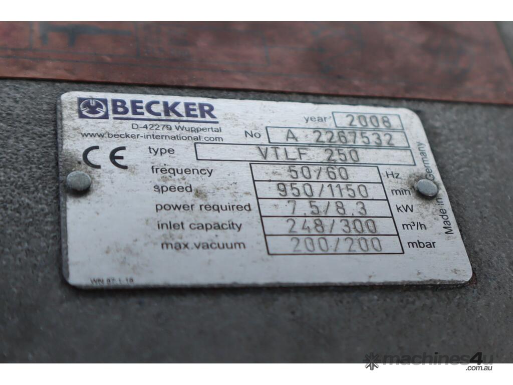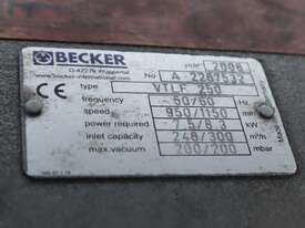 Industrial Becker oil free rotary vane vacuum pump in excellent condition and designed for continuous vacuum generation. Commonly used as a central or dedicated vacuum source in manufacturing environments where clean, reliable vacuum is required without the complexity of oil-sealed systems. The dry-running design eliminates oil in the pumping chamber, making it easier to maintain and suitable for applications where contamination must be minimised.
