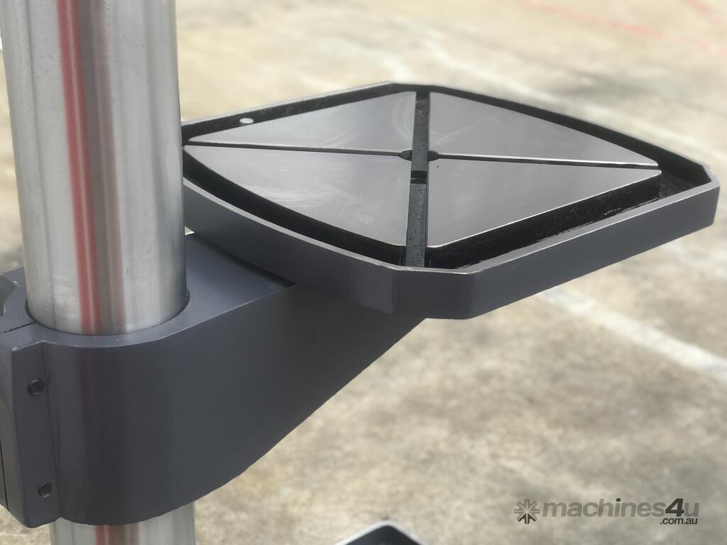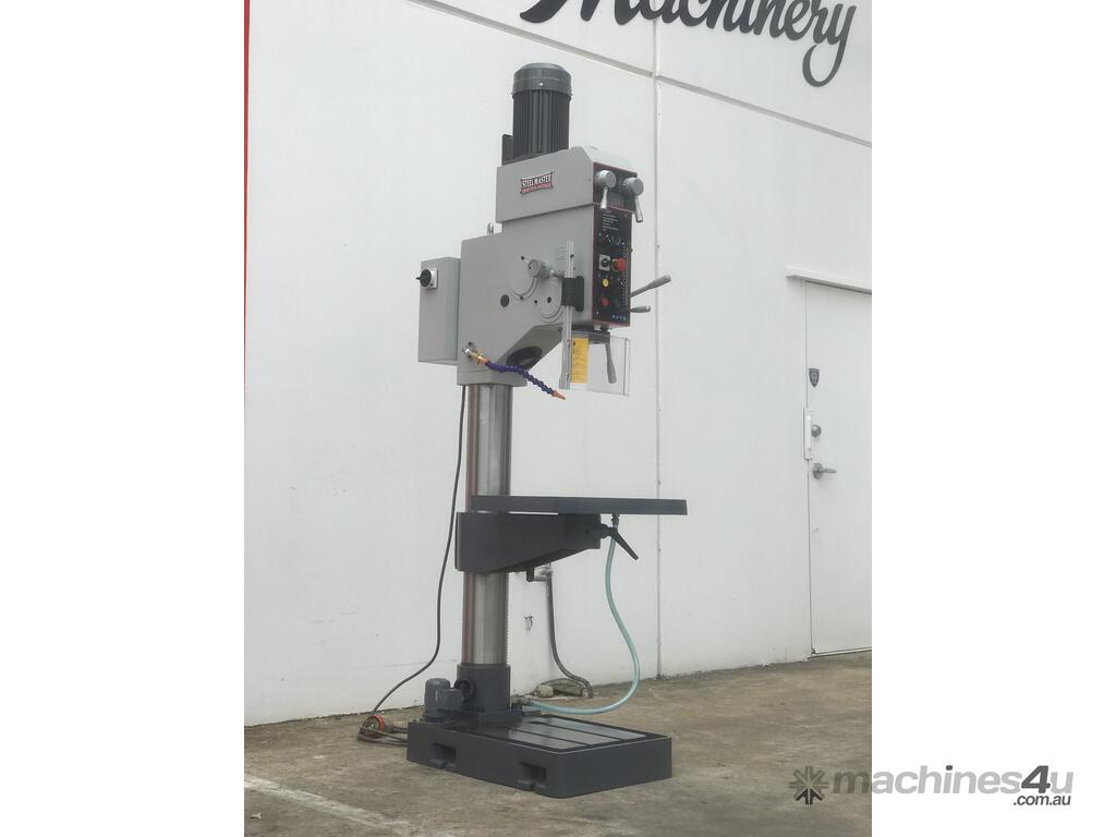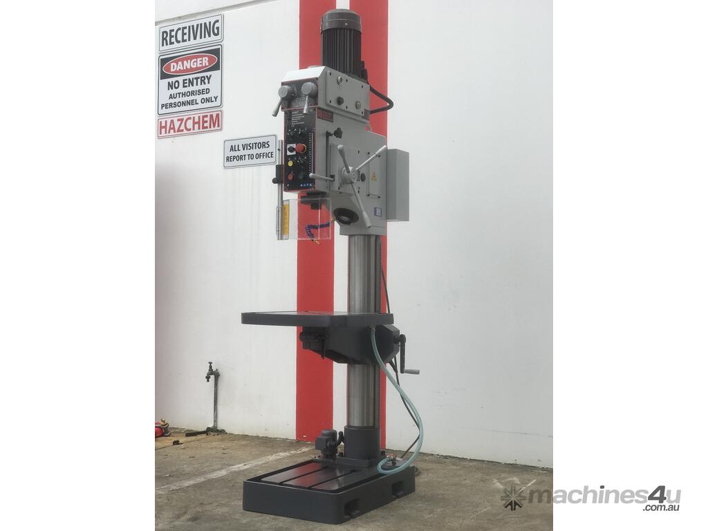 This is an excellent buy in a heavy-duty geared head Drill Press. Equipped with a large tee slotted table and power feed, this machine is robust enough for milling, drilling and boring. And the head is adjustable on the column! Head also swivels left and right. These features expands the capacity of this machine. You can also change speeds quickly and easily.
