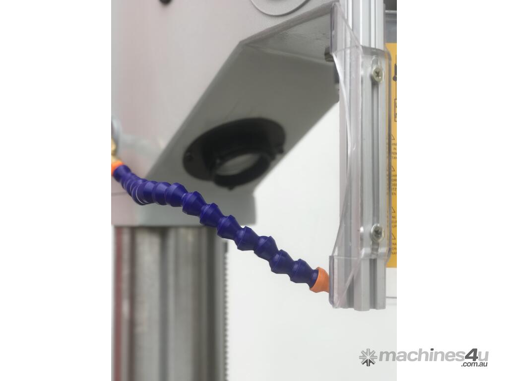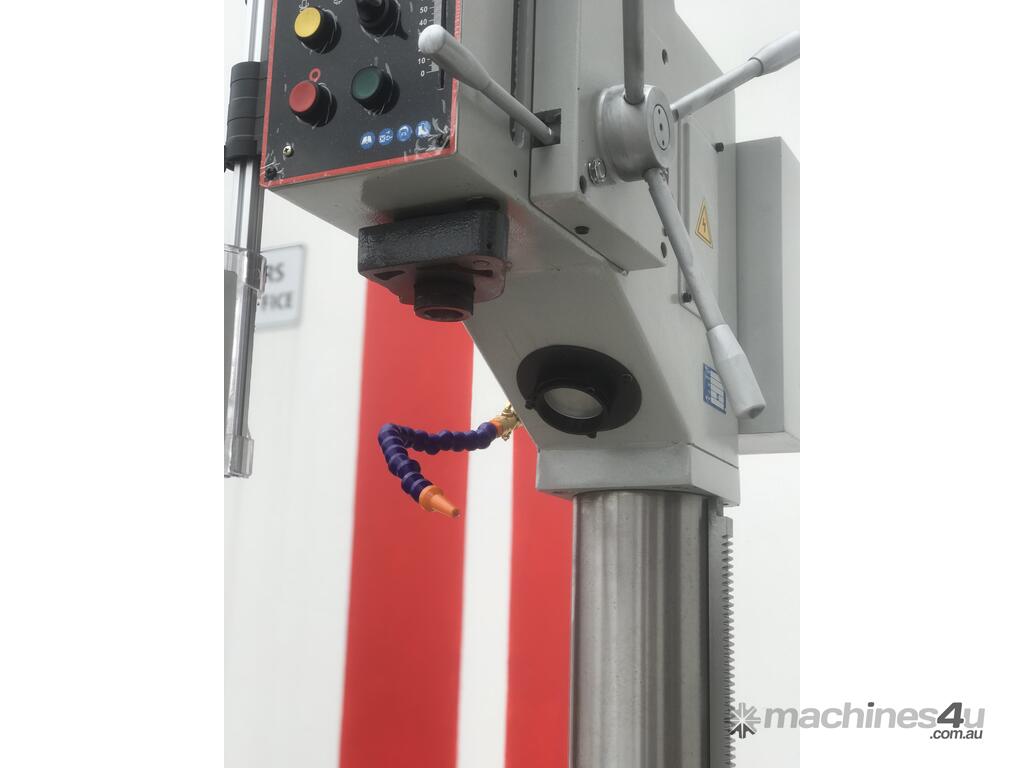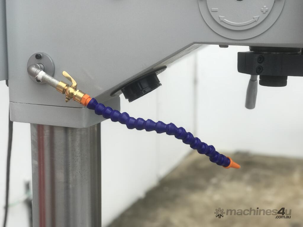 Heavy-duty thick-walled column, power down feed, tapping switch, coolant pump, halogen work light - What more can you ask for?