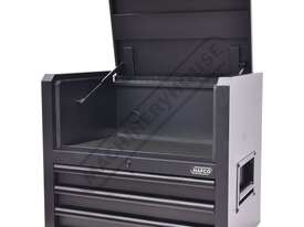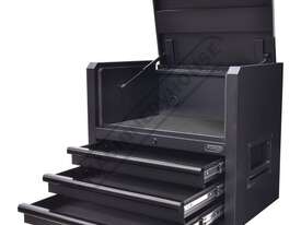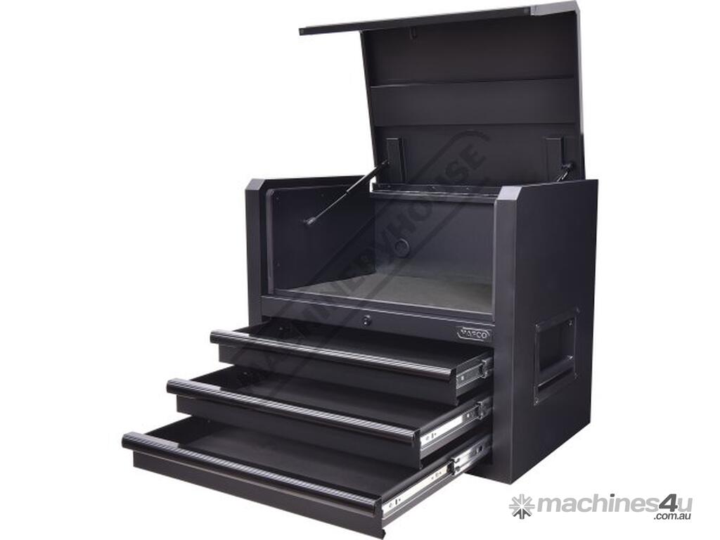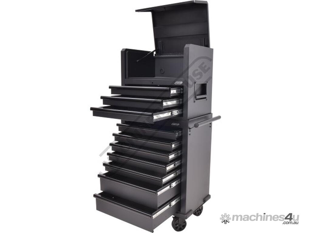Locked and loaded with features, like gas struts for easy access, key lockable security, and ball-bearing drawer slides – these boxes are as tough as your tools. With base corner protection and foam mats lining the drawers, your gear stays in prime condition as you push or pull your toolboxes with the oversize handles that can be mounted on either side.
