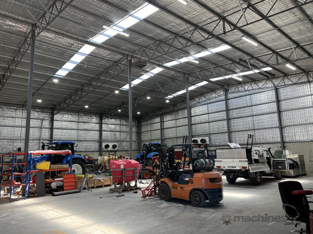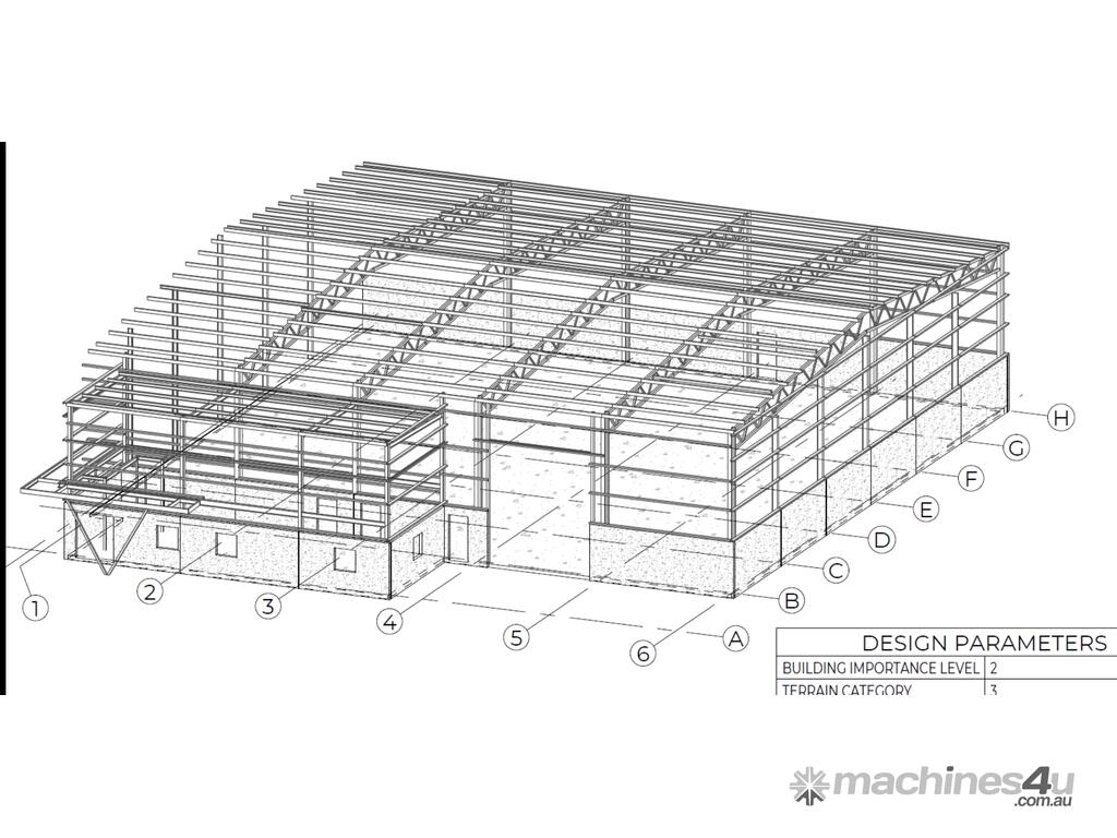 Industrial shed kit purchased to add to existing shed - but now not required. 30x30mtr shed with 7.2mtr eve + 100m2 office area. Kit has 3 walls + roof. Needs facade, tilt panels, roller doors etc. leeton pickup. Full plans available.great starter for a commercial or farm project.