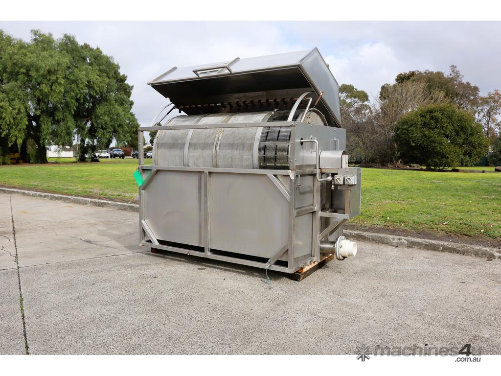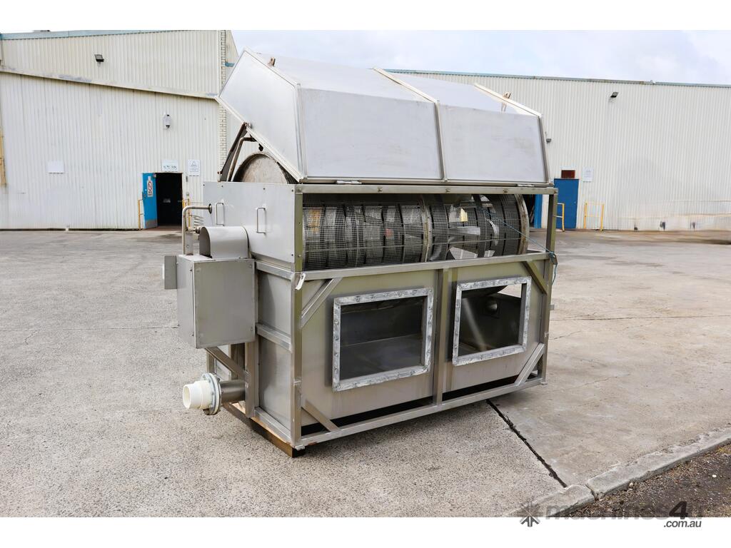 This rotary drum washer is in great condition. Made of stainless steel and is suitable to wash a variety of items in mass quantities. The items are fed into a rotary drum and then sprayed with the jet sprays from the top. The rotary drum ensures consistent tumbling of the products to achieve a thorough wash.