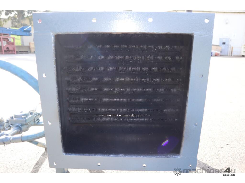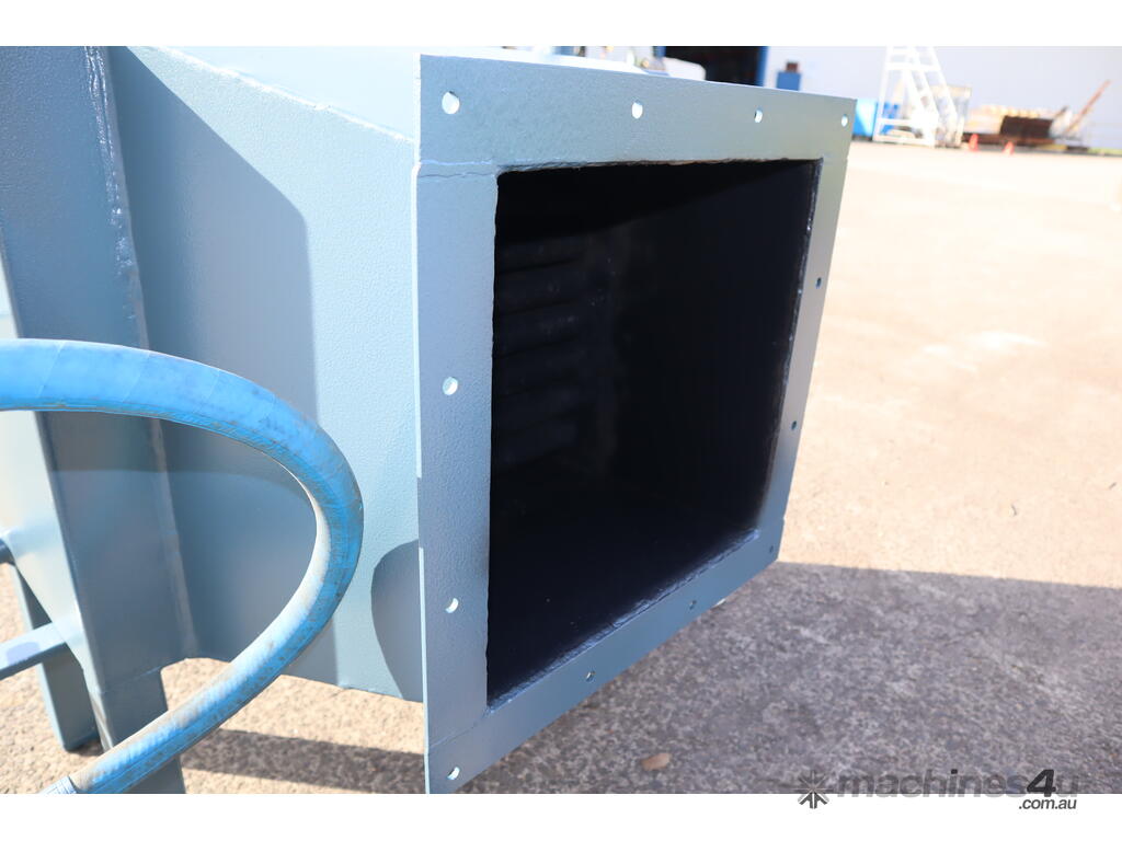 This item is designed to provide heated air for industrial applications. The unit’s size and the large frontal opening suggest it is intended for use in environments where volumes of air need to be heated efficiently, such as in factories, warehouses, or workshops. Industries such as manufacturing, material processing, and food production, where controlled air temperature is essential, would benefit from this heater. The unit's sturdy construction ensures it can handle the rigors of continuous industrial use, delivering reliable performance in demanding conditions.