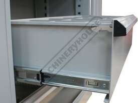 Our heavy-duty industrial steel storage cupboards are built tough to withstand the toughest workshop environments. Being a compact size of 900mm wide x 450mm deep x 1800mm high making it the perfect choice for tooling, machine accessories & consumable items in your workshop. Its industrial quality & sturdy construction making it capable of handling heavy loads with a very generous shelf load capacity of 150kg per shelf & the drawers capable of handling 75kg per drawer while keeping goods secure against unauthorised access with a 3-point locking system. The powder coated steel frame & commercial quality fabricated components provides maximum rigidity for the most demanding industrial applications.
