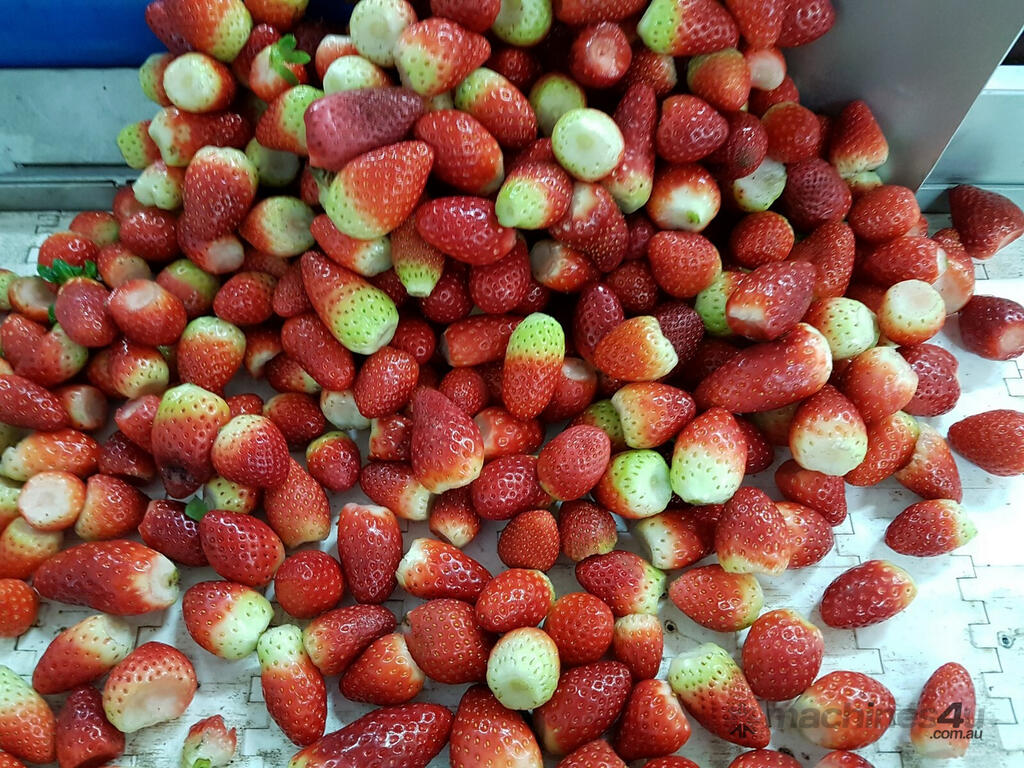 ``The DF24 destalking machine is designed for the destalking and cutting of strawberries and radishes into halves or quarters. It is an instrument designed to reduce manual labour without sacrificing delicate processing and while avoiding mechanical damage to the fruit.``