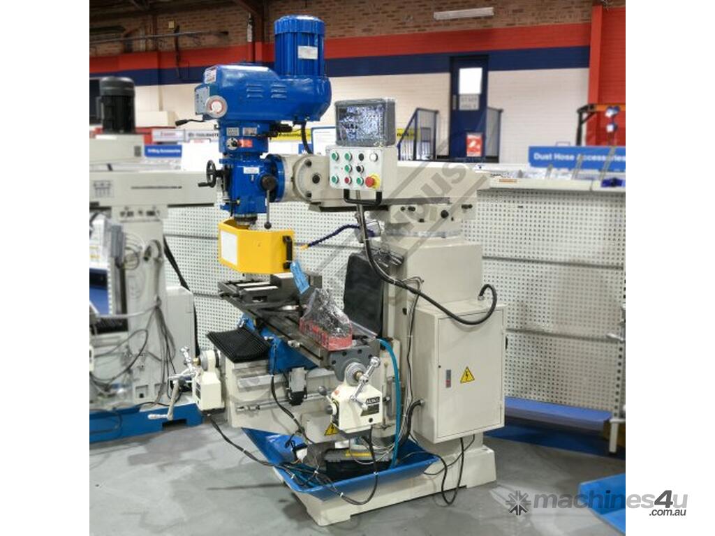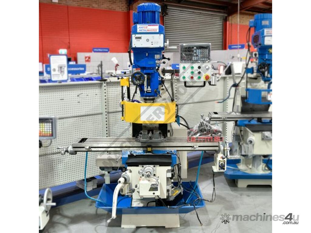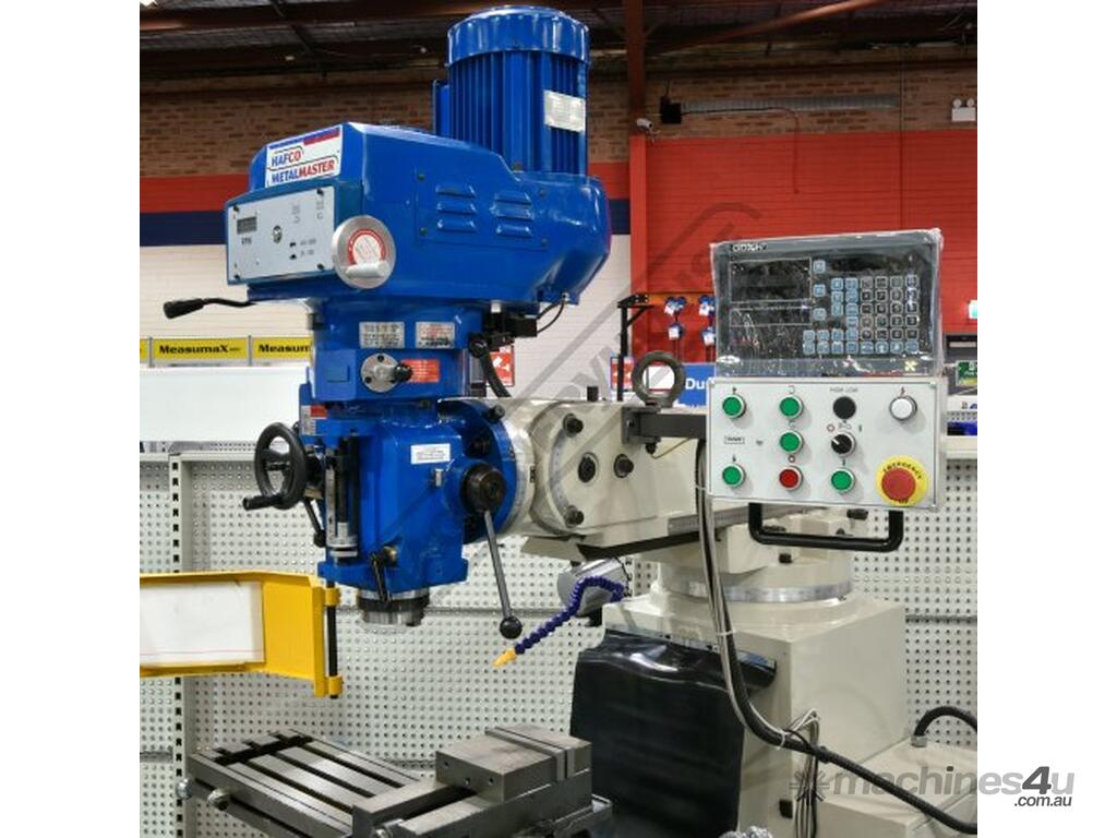 HAFCO-METALMASTER Industrial Turret Milling Machine BM-63VE Table Travel: (X) - 890mm (Y) - 400mm (Z) - 400mm Includes Ballscrews X & Y Axis, Digital Readout System, Machine Vice & Clamp Kit