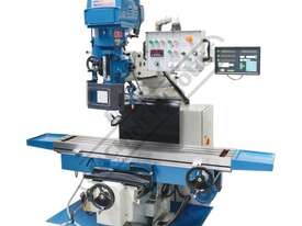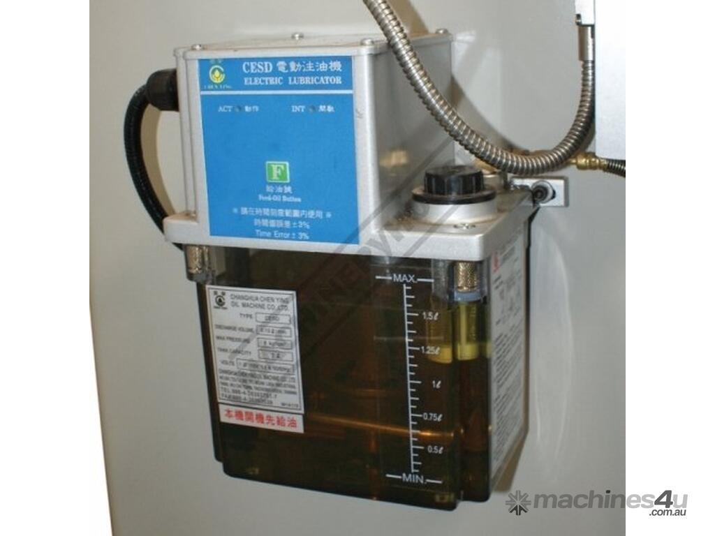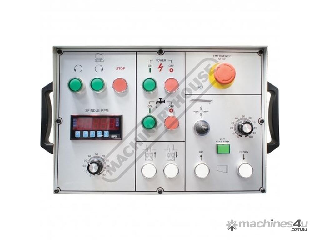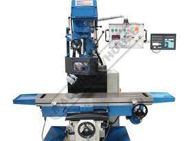This milling machine package is also complete with a few of the most desirable features for example, 5hp motor driving the NT40 spindle taper, Inverter controller X & Y axis feeds, Z-axis powered elevating motor, pneumatic operated draw bar to easily & quickly change tool holders with a push of a button and automatic operated oil pump to keep slides in perfect working order.
