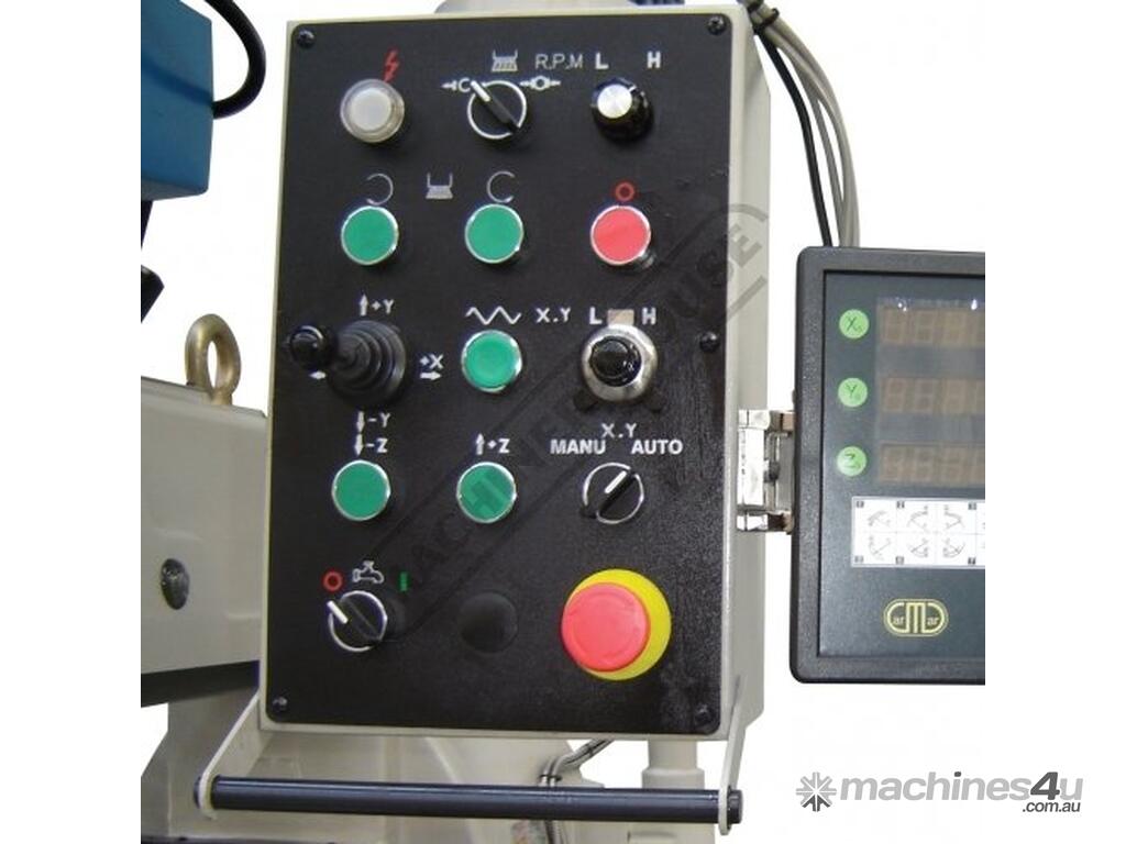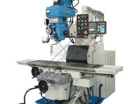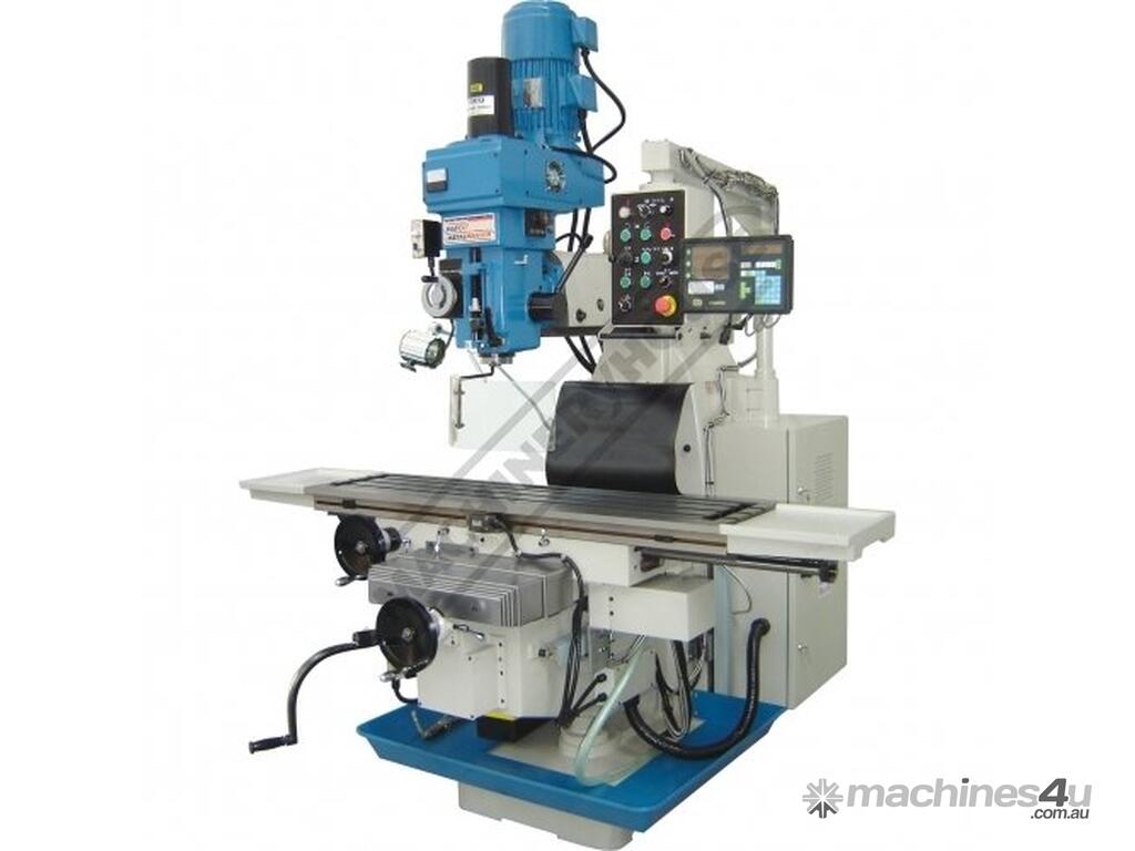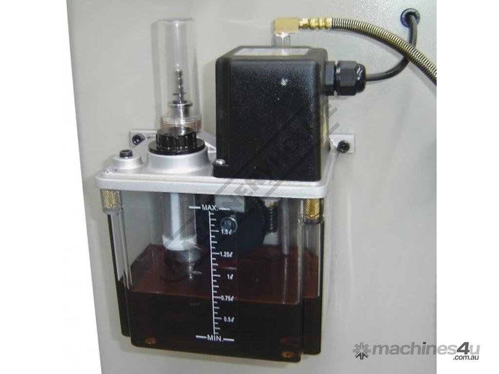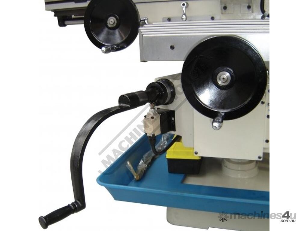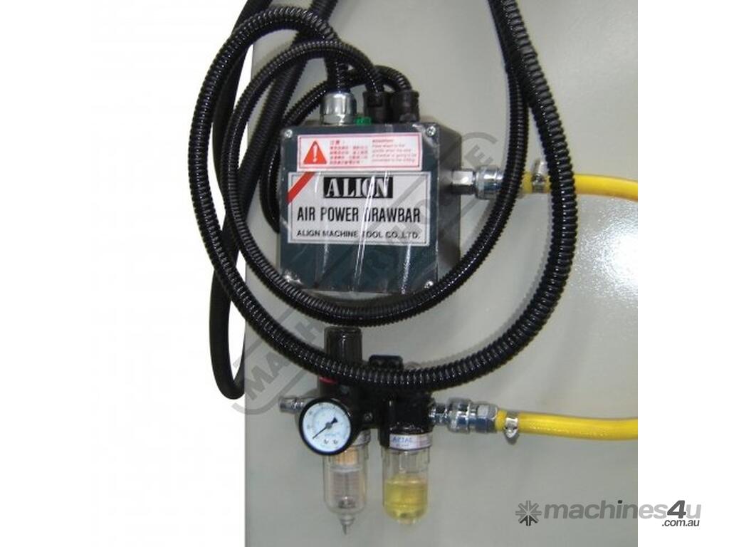 This milling machine package is also complete with a few of the most desirable features for example, NT40 spindle taper, Z-axis powered elevating motor, pneumatic operated draw bar to easily & quickly change tool holders with a push of a button and automatic operated oil pump to keep slides in perfect working order.