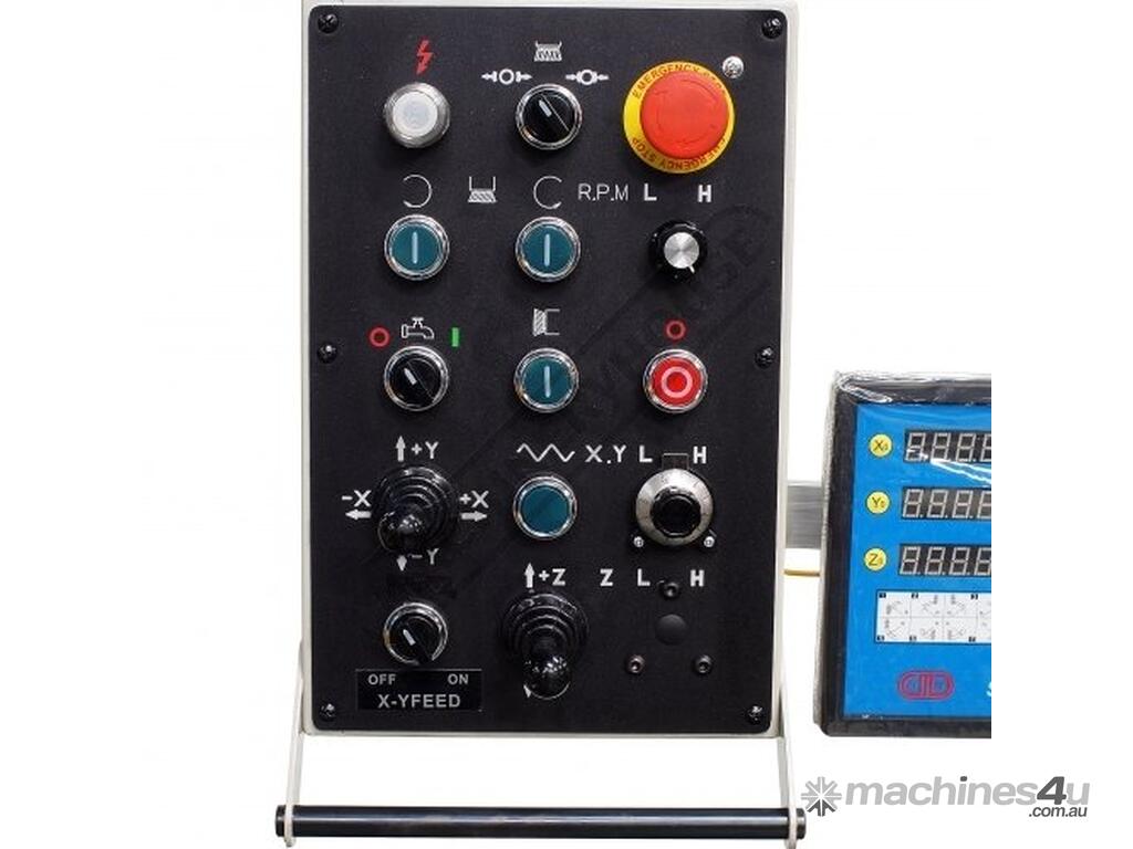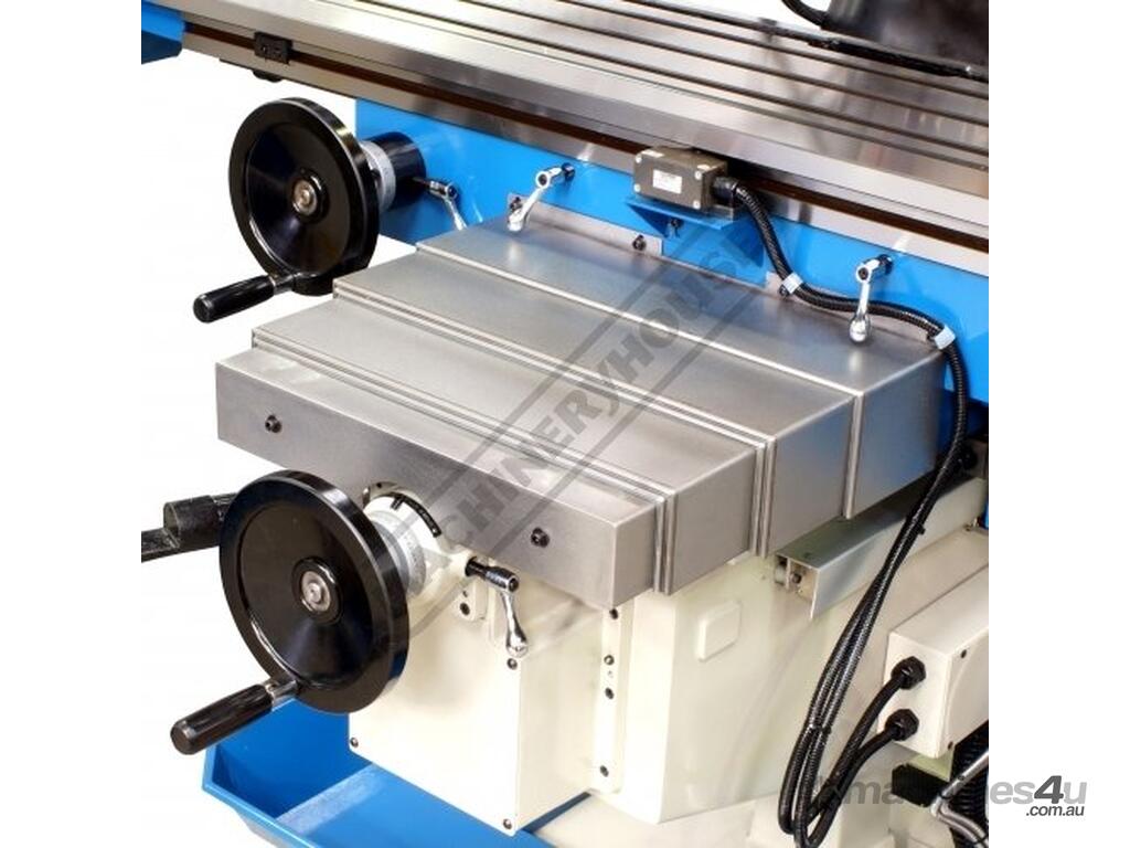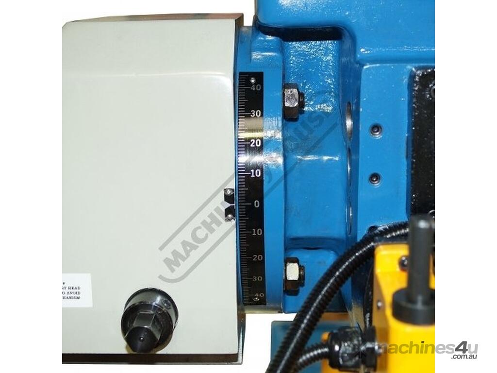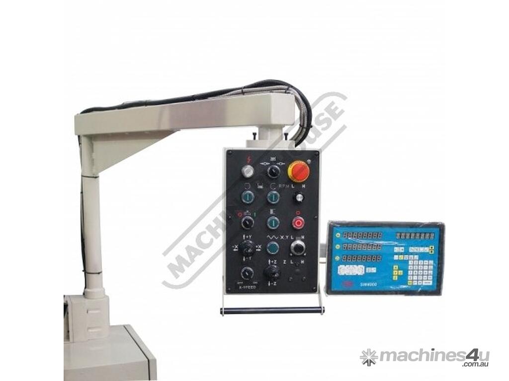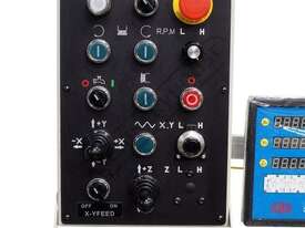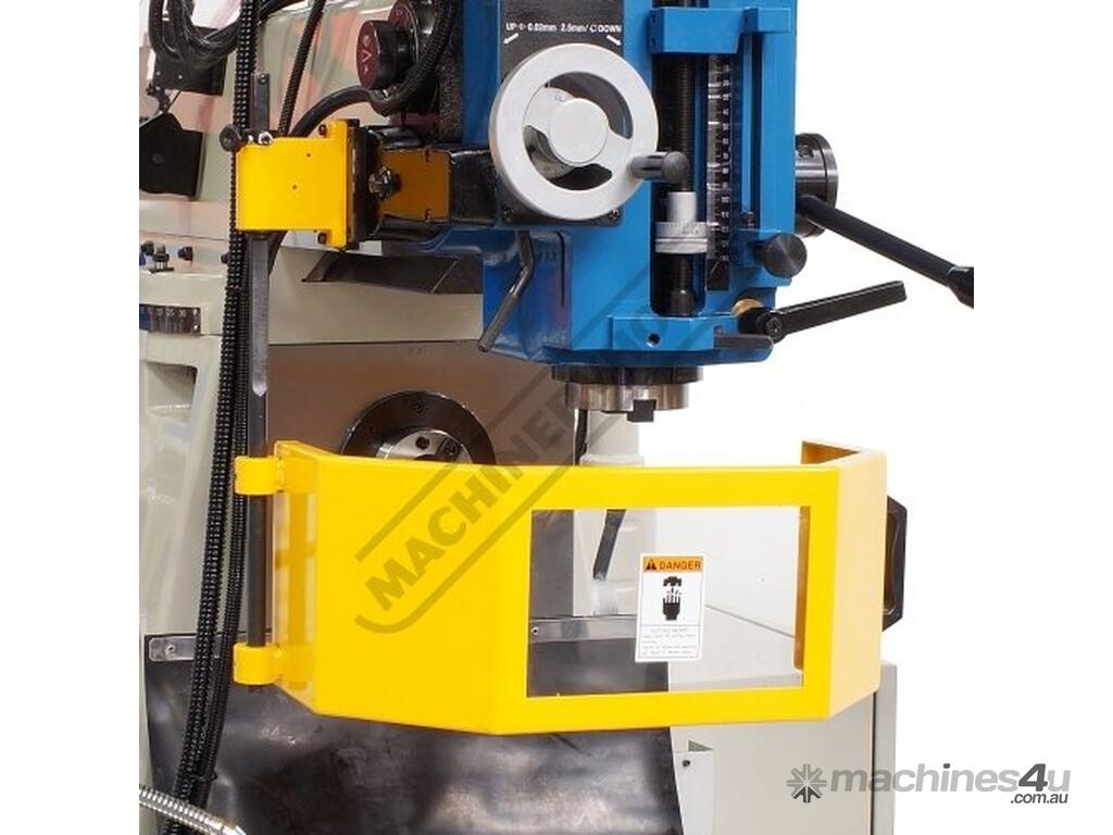 This milling machine package is also complete with a few of the most desirable features for example, NT40 spindle taper, Z-axis powered elevating motor, pneumatic operated draw bar to easily & quickly change tool holders with a push of a button and automatic operated oil pump to keep slides in perfect working order.