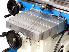 The BM-90HV machine also includes features like, 3-axis digital readout system fitted, turcite B coated X & Y slide-ways that reduces friction to provide smooth table movement even when loaded up with a heavy job, square constructed slideways on X & Z-Axis, Steel slideway cover on Y-Axis for maximum protection & an electric fan installed on the milling head to reduce excessive heat & maintain accuracy.