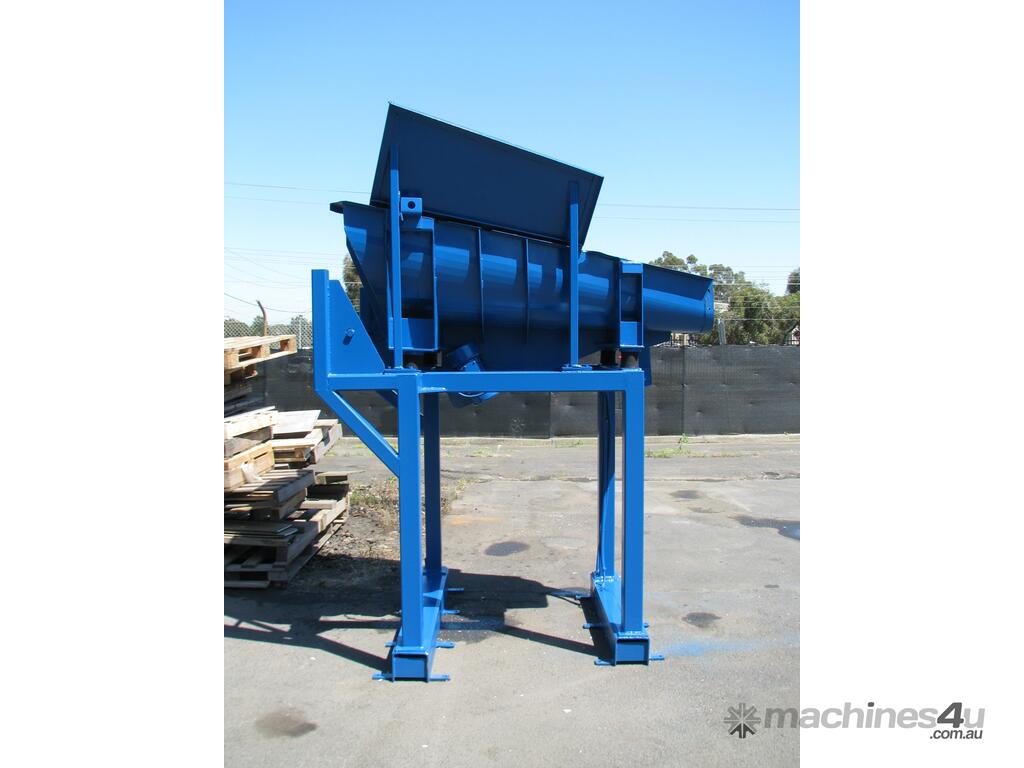 - Description: Large industrial vibrating tray feeder designed for heavy-duty material handling applications.