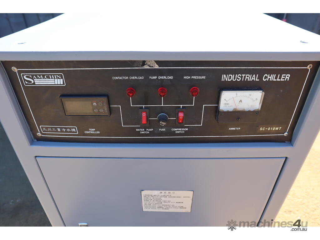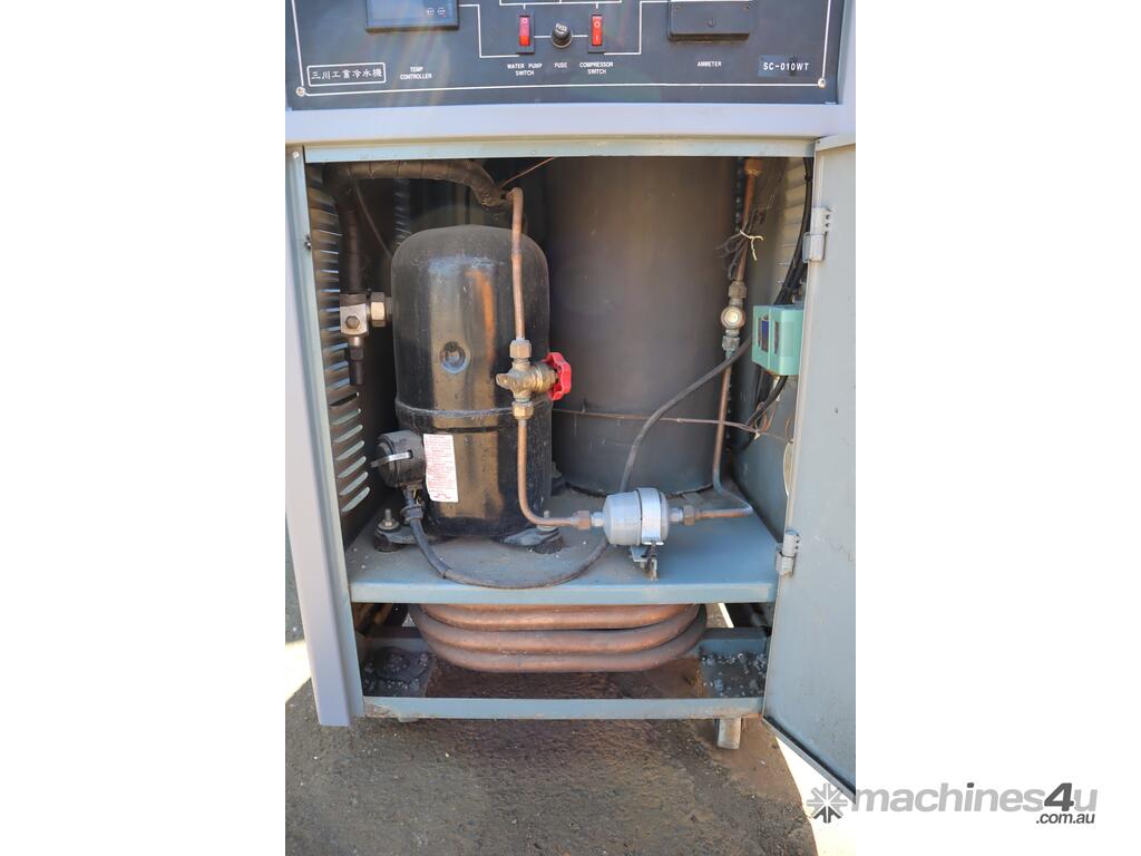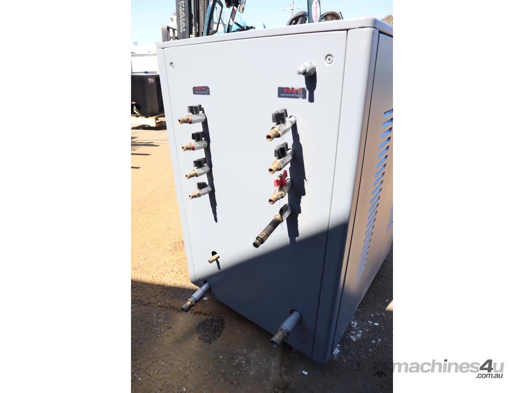 It is a water cooled type chiller (as opposed to air cooled that you usually see).