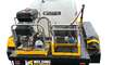 Specifications for New 2025 1000L Combo Pressure Washer Trailer. TRAILER Tandem axle flat top trailer Painted black Atm 2000 kg Heavy duty 40mm square axles Mechanical disk brakes mechanical override. 2 Ton rocker springs New 14 5 Stud rims with 185 x14 LT tyres Solid checker plate floor and guards. Heavy duty swing up jockey wheel LED Rear lights Spare wheel on bracket at front 7 pin round plug connector 12 months structural warranty on trailer WATER TANK 1000 Litre Poly water tank mounted to trailer Litres marked on rear of tank Clear sight gauge at one end of tank. Tested all wate....