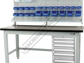 To complete the package a 6 drawer tooling cabinet designed to fit underneath the bench is another addition. Featuring a range of plastic boxes in the top drawer it would be ideal for the storage of small parts such as screws etc. The lower drawers incorporate movable steel dividers which allow you to configure the space to suit your application