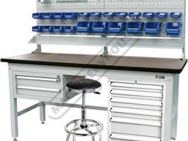 To complete the package a 6 drawer & 2 drawer tooling cabinets designed to fit underneath the bench is another addition as well as a stool. Featuring a range of plastic boxes in the top drawer it would be ideal for the storage of small parts such as screws etc. The lower drawers incorporate movable steel dividers which allow you to configure the space to suit your application