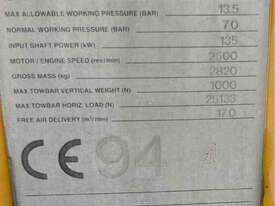 600cfm Max allowable pressure 13.5bar, Cat 3116 Diesel motor, single axle trailer adjustable drawbar Pintle hitch.