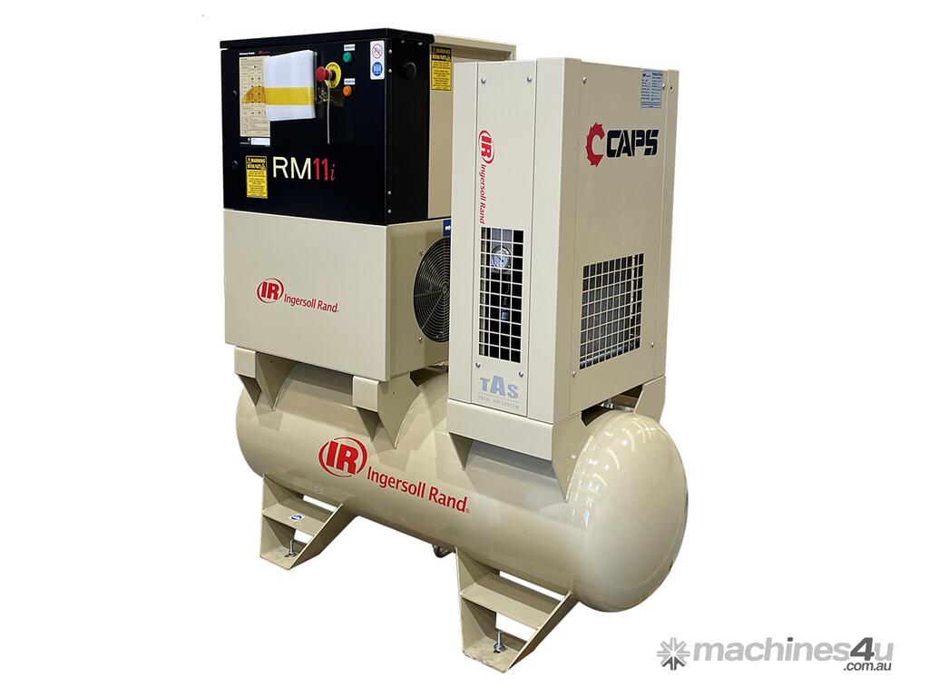 The Ingersoll Rand RM11i A10TAS 272 is an 11kW integrated solutions rotary screw compressor that includes a dryer and a 272L air receiver. This is one of the most dependable compressors on the market that is easy to install, simple to operate, and will deliver rated compressed air with reliable efficiency.