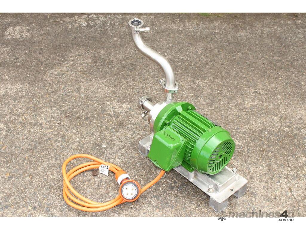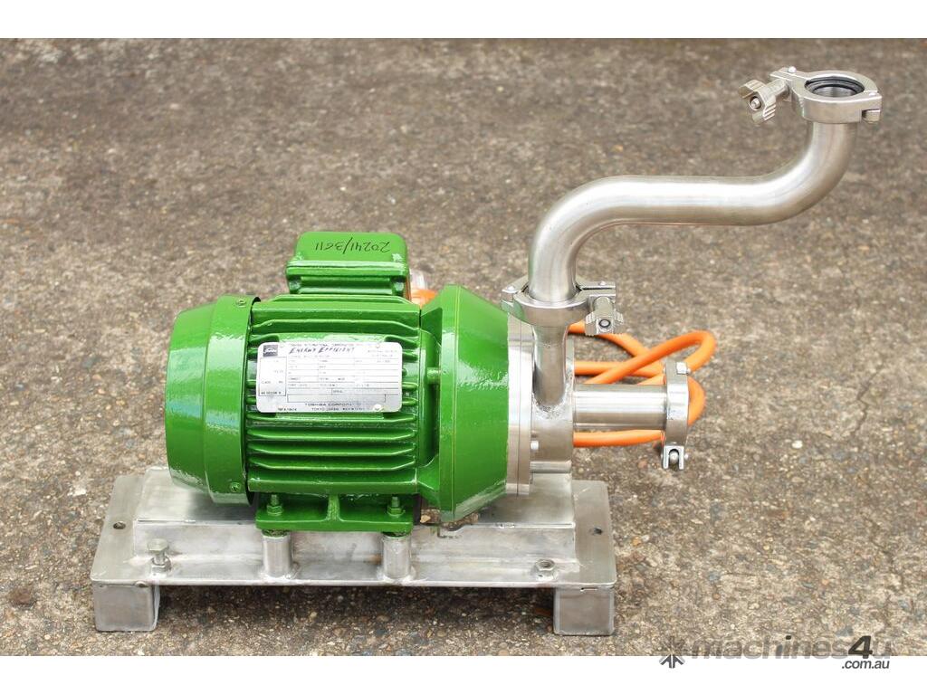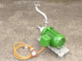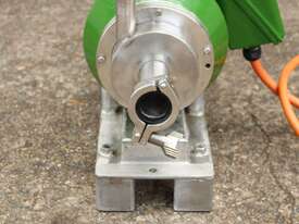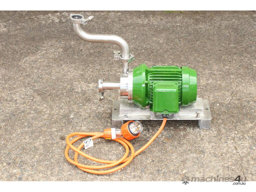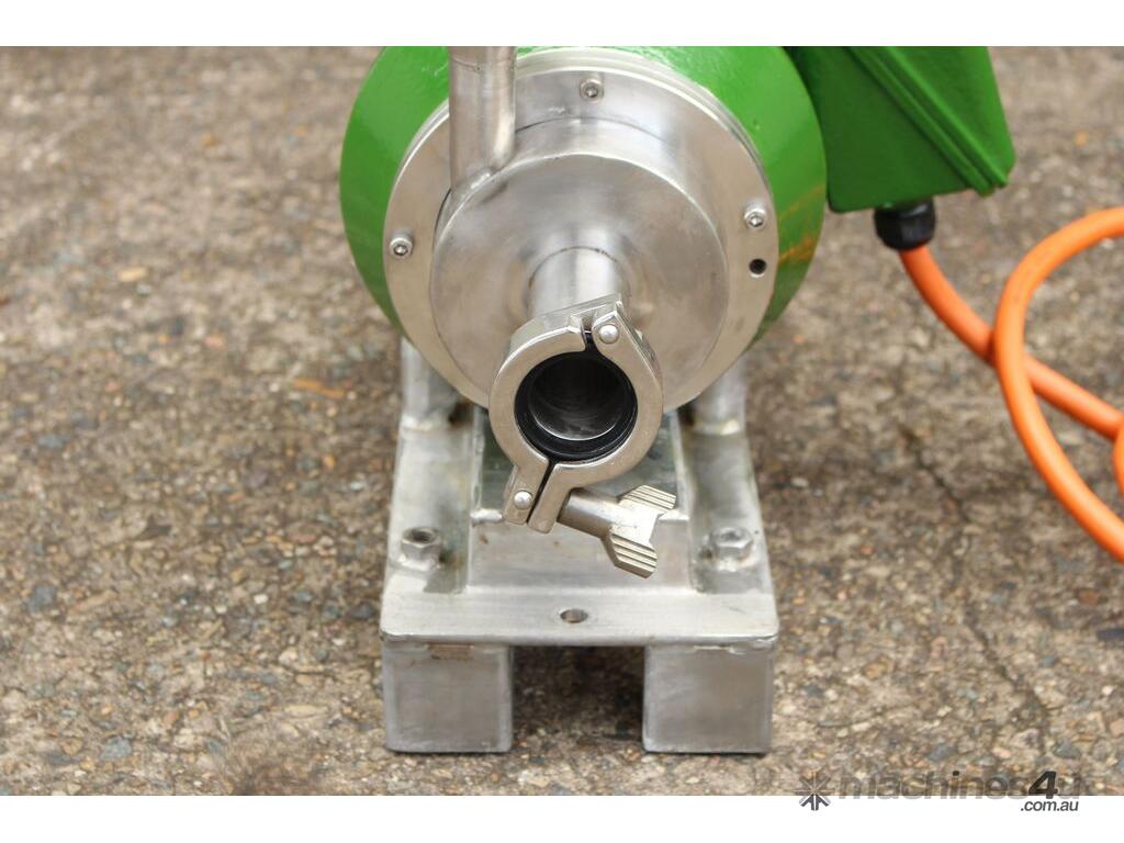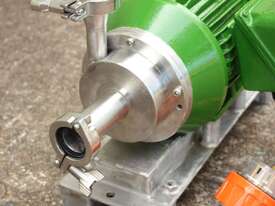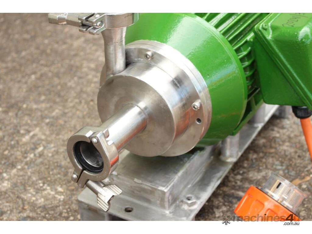 Inline Emulsifier, 38mm dia inlet x outlet, driven by 3 phase 0.75kw 2780rpm motor, all stainless steel wetted parts, 80mm dia impeller & dia 90mm screen, with stainless steel foundation base