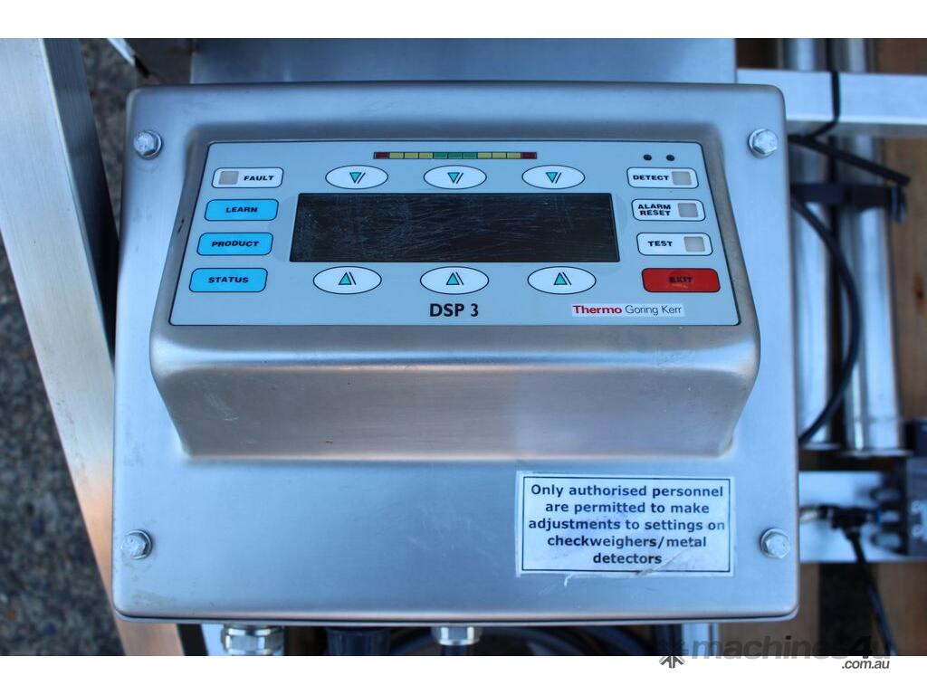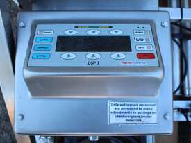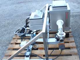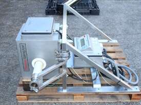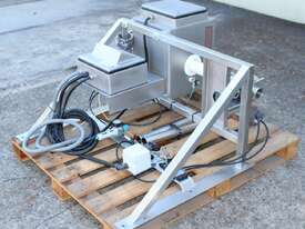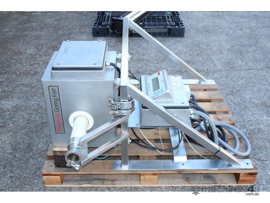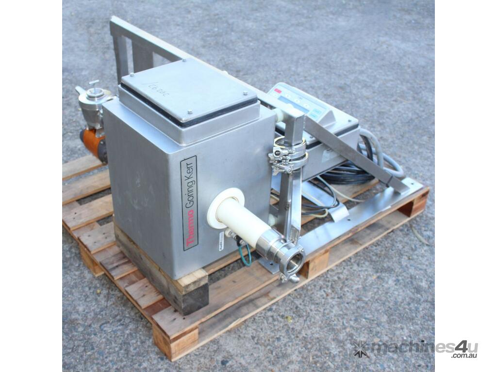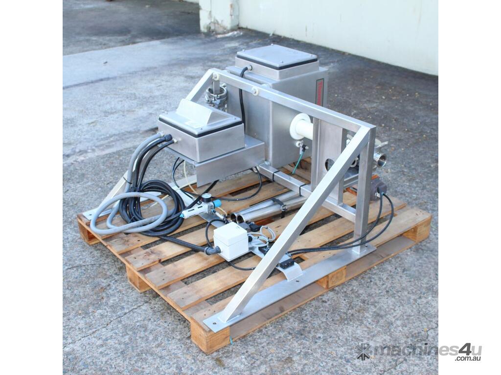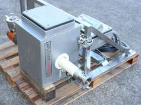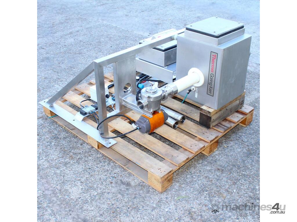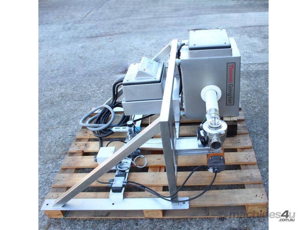 Inline Liquid Metal Detector, "Thermo Goring Kerr" model DSP3, 50mm dia inlet and outlet, provided with 2 way rejection actuator valve, wall mounted stainless steel frame