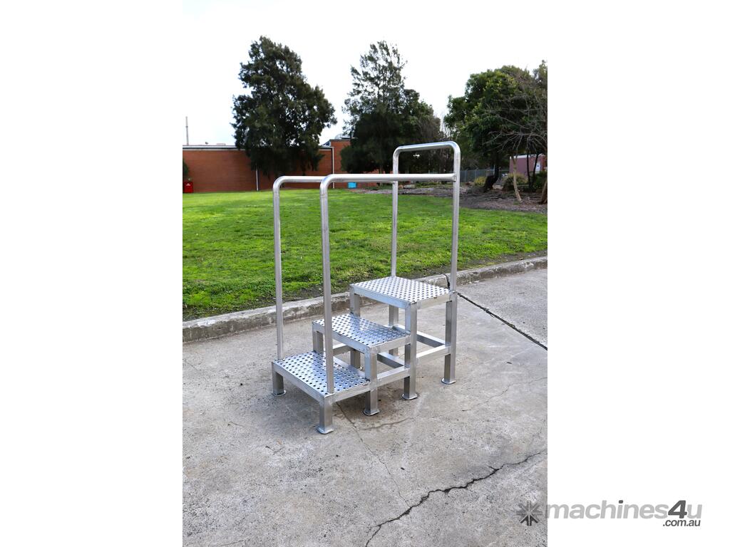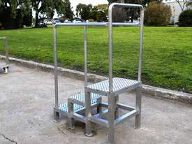 This access platform is in great condition. Sturdily built and designed for safety, stability and has a set of handrails.