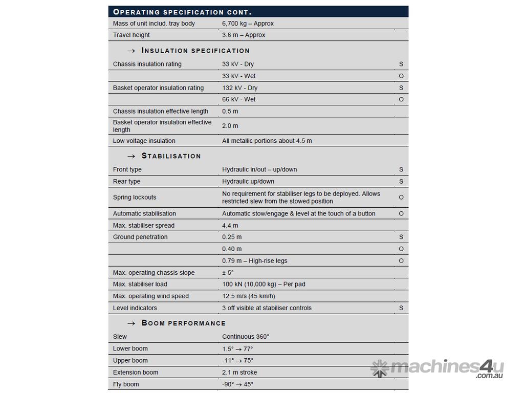 Boom Insulation Rating: Dry: 132 / 33 KV Wet: 66 / 33 KV