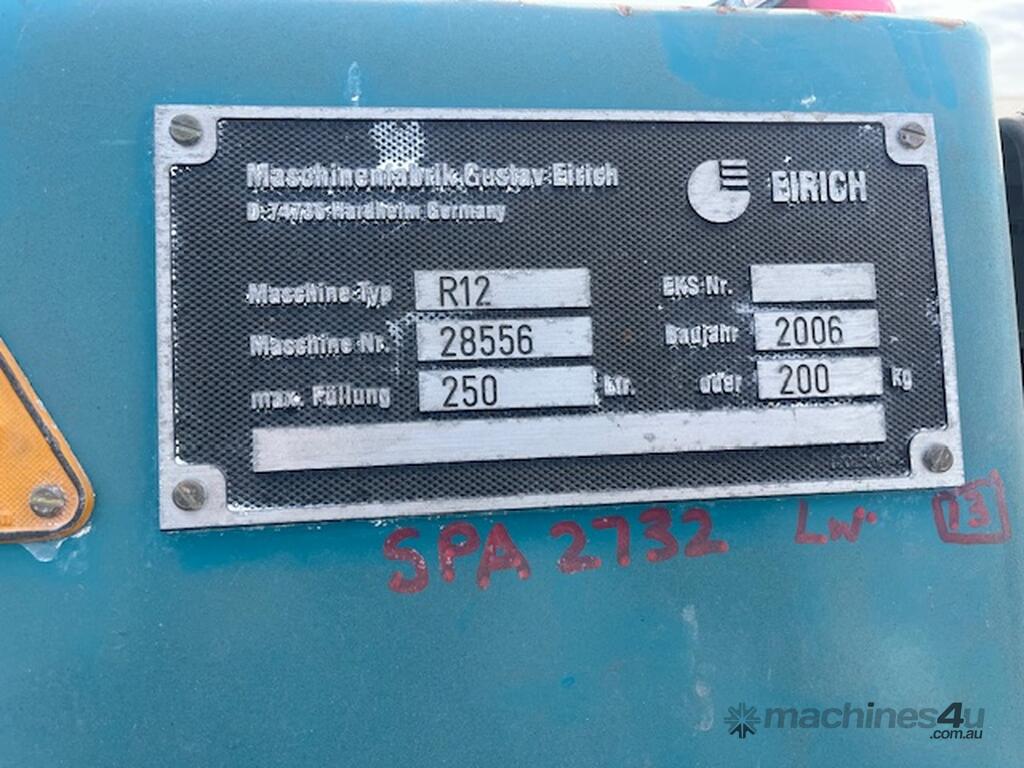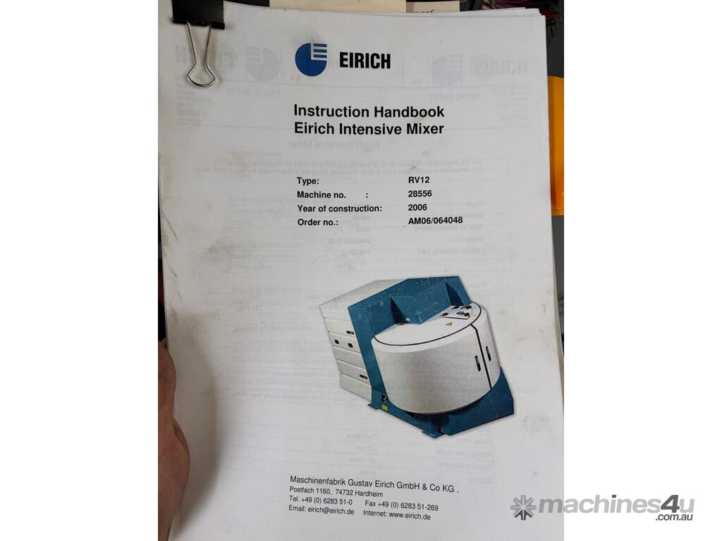 This 2006 Eirich R12 Intensive Mixer represents a rare opportunity to acquire a premium German-engineered batch mixer in the Australian market. Built by Maschinenfabrik Gustav Eirich — one of the world\'s leading mixing technology manufacturers — the R12 delivers exceptional homogenisation performance across a wide range of materials including ceramics, refractories, abrasives, chemicals, and construction products. With a 250 litre (200 kg) batch capacity and mounted on a heavy-duty elevated steel skid frame, this unit is ready for efficient relocation and rapid site integration. A proven workhorse with outstanding build quality, this Eirich mixer offers far greater longevity and mixing performance than comparable alternatives.