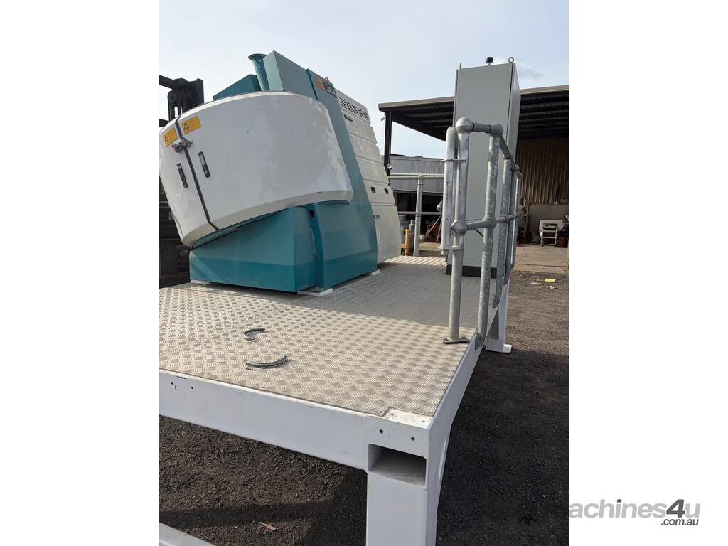 Mounted on purpose-built elevated steel skid frame with chequer plate deck — forklift ready