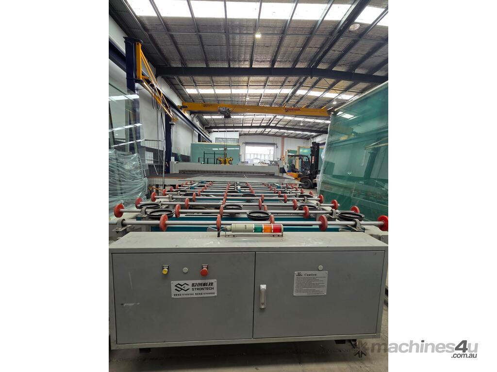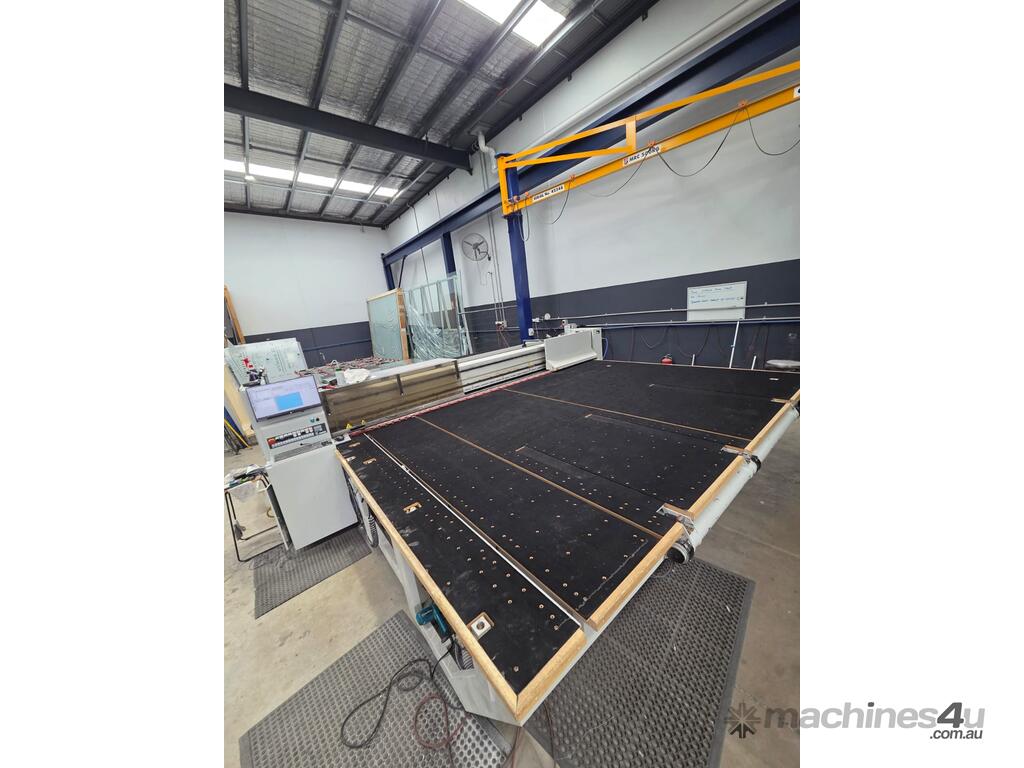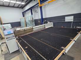 A complete laminated glass cutting solution consisting of a 2021 Intermac GENIUS 37 LM Laminate Cutting Table paired with a 2021 Strontech SC-4228 CNC Glass Loader.
