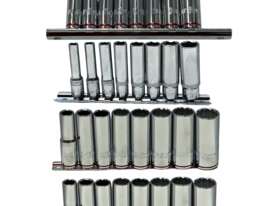 Included are metric and SAE sockets and a full complement of 1/4", 3/8" and 1/2" drive socket accessories including ratchets, breaker bars, extensions bars from 50mm up to 900mm long plus metric and SAE impact sockets. There are ring open end ratchet and standard spanners in both Metric and SAE, screwdrivers, and pliers for the complete list of contents please check out the table below. With the high density foam drawer inserts you can easily see if you have left a tool on the job.