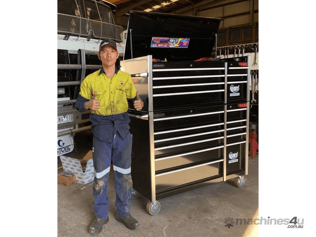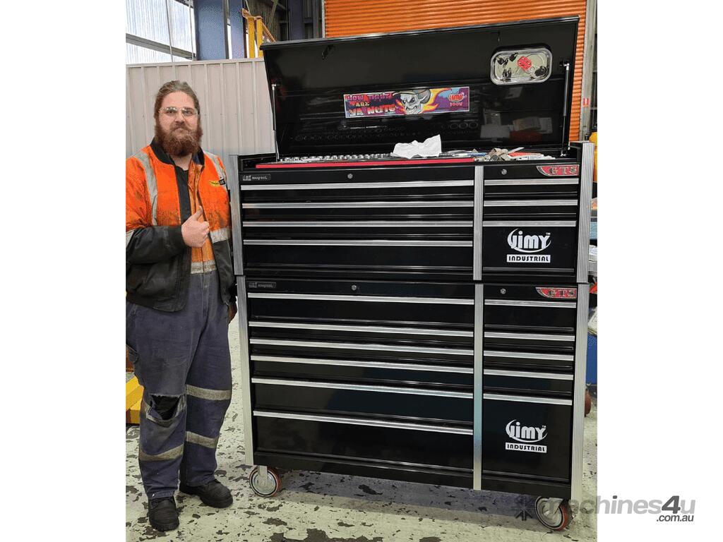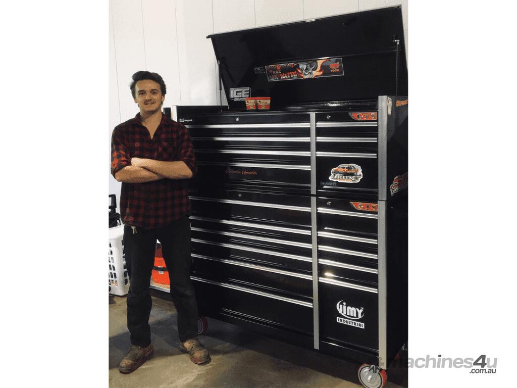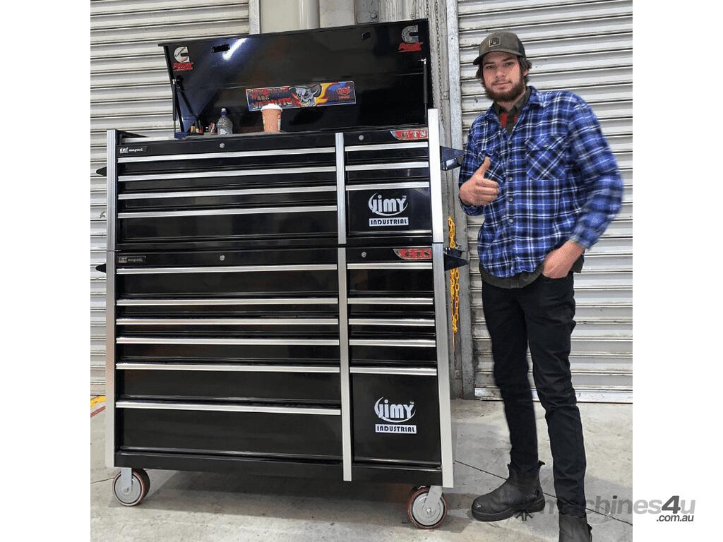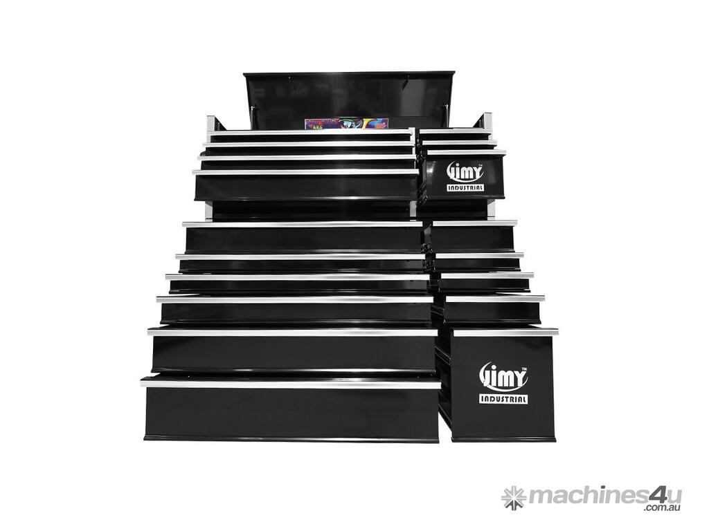 The 18 drawer roller cabinet ‘GTS’ Mechanic’s Tool Kit from Jimy Tools offers a wide range of tools for the trade’s person. The kit consists of a 7 drawer 56" ‘GTS’ tool chest and an 11 drawer 56" ‘GTS’ roller cabinet. Both the tool chest and the roller cabinet have been powder coated with a tough industrial finish and features include 1.2mm thick steel, fully lockable with rear internal locking systemandball bearing slide drawers with twin slides on the deeper drawers. The tool chest also offers a dual gas strut system for the lid.
