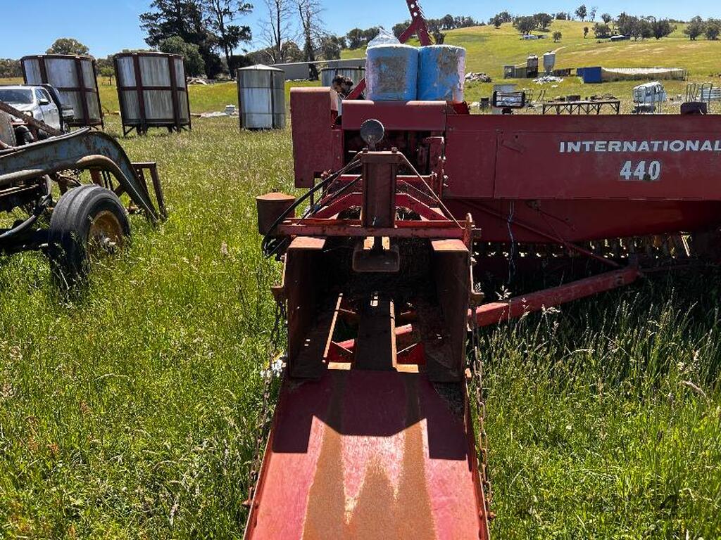International Harvester 440. Last used 2 years ago, parked up fully operational unit. Running cond not inspected at assessment. Bailing twine included. Used to bale small square bales.