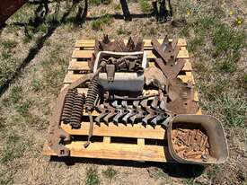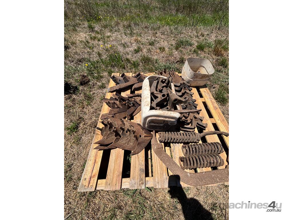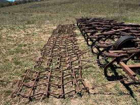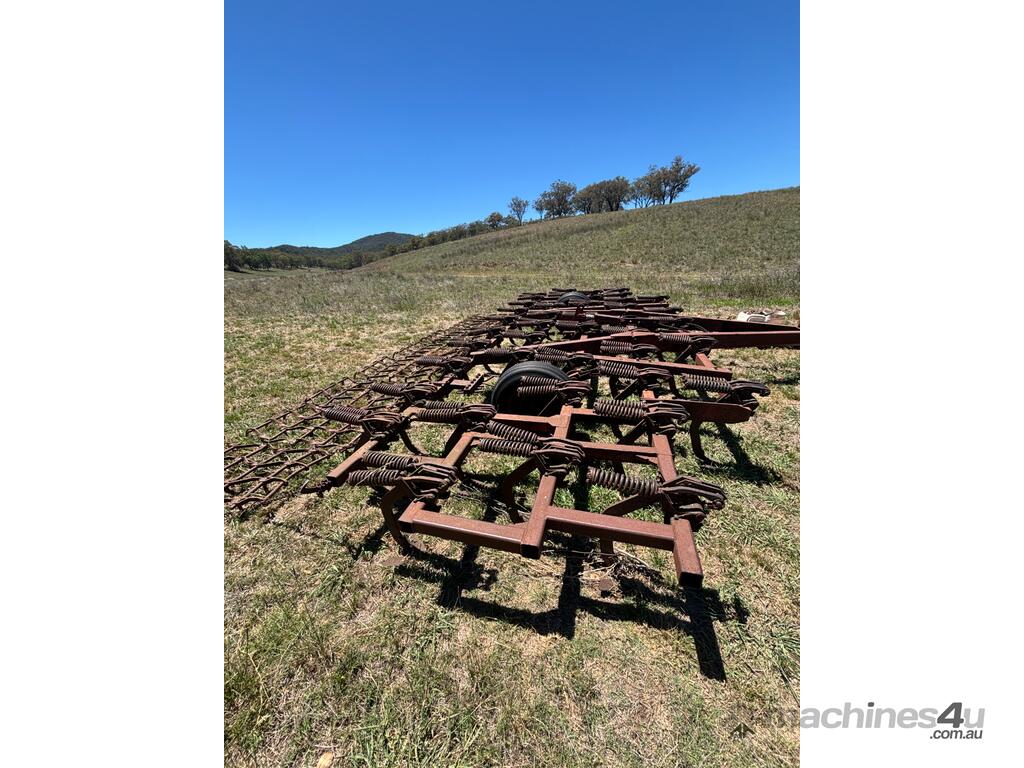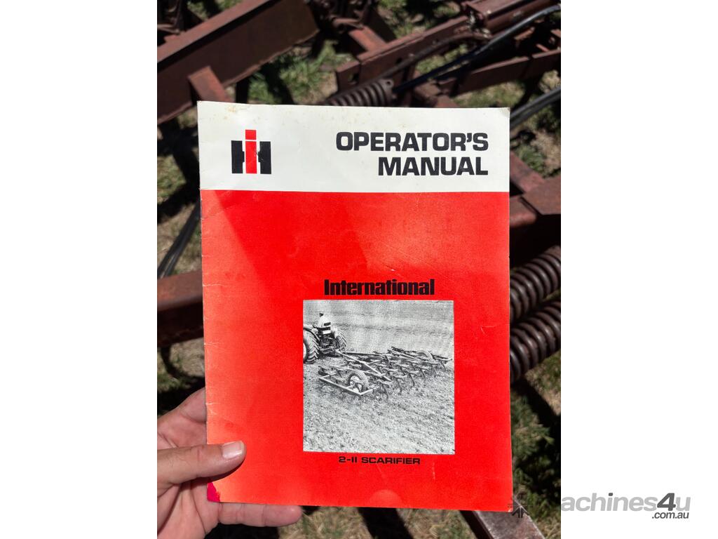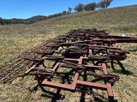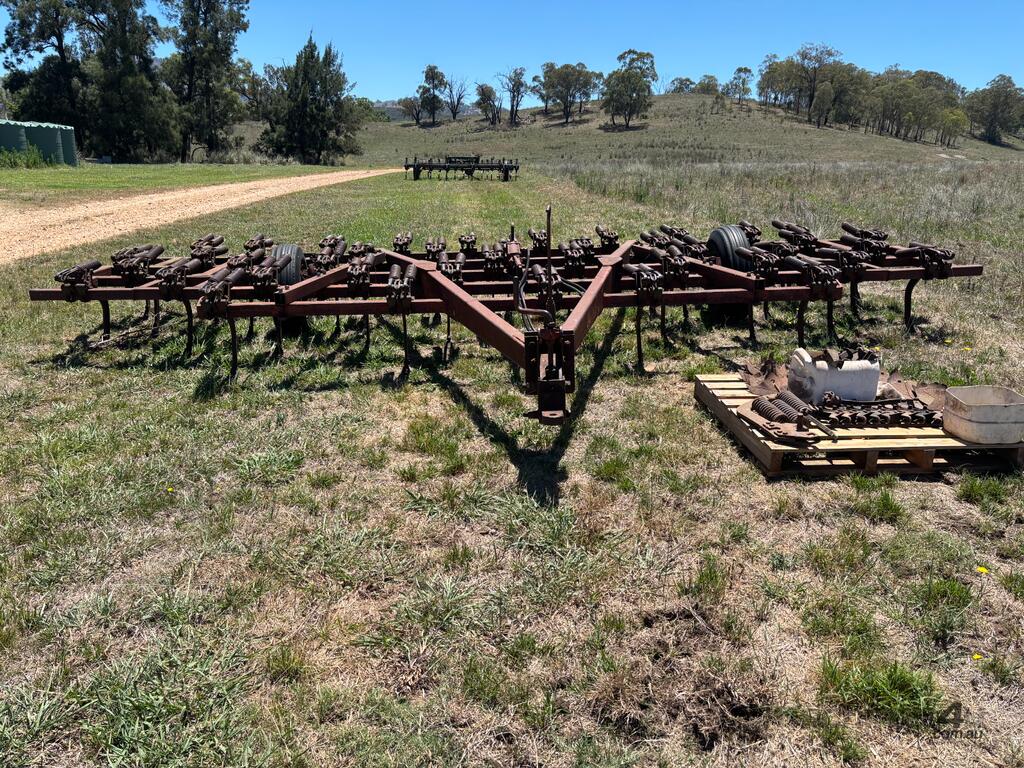 International Scarifier, 41 tynne 10" points, heavy set trailing harrows, 7m operating width. Will need to be broken down to be transported, tractor available for lifting.